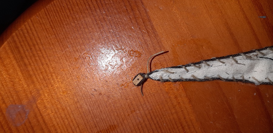 @Dali, na samym początku, nawet przed szyciem zastanawiałem się jak to zrobić, gdzieś, niestety nie pamiętam gdzie widziałem, że do "ucha" bezpośrednio była przymocowana lina... Zrobiłem bez niej wzorując się na: