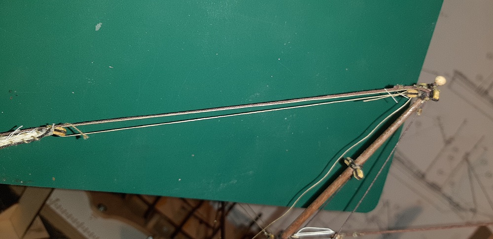 Zawiesiłem Flying jib i próbnie (na sucho) wykonałem odciągi.