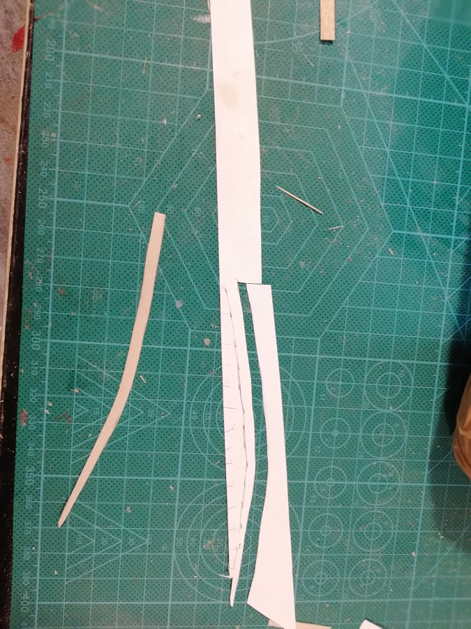 Tomku nieporozumienie między podpowiadającymi a kol. Wiktorem polega na tym, że Wiktor klei drugie poszycie PROSTYMI listwami z forniru, a na tym kadłubie prawidłowo jak mu podpowiadasz nie da się tego zrobić (PROSTYMI listwami). Listwy w tej części powinny być PROFILOWANE do odpowiedniego kształtu. Doskonale to widać było na pierwszym poszyciu jak PROSTE listwy naturalnie się układają na tym kadłubie - notabene nieprawidłowo.
