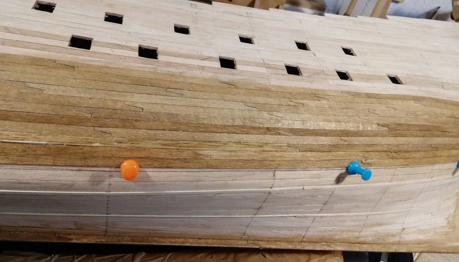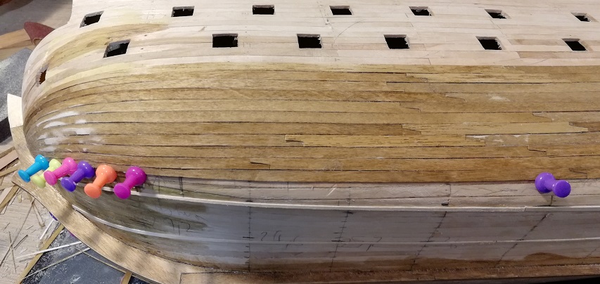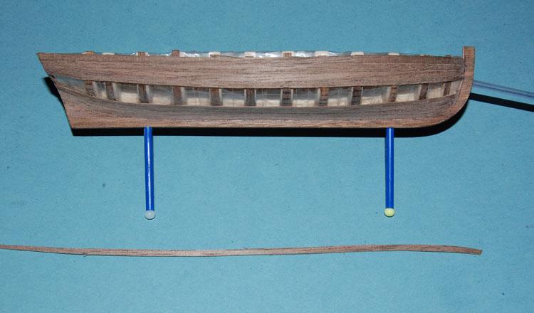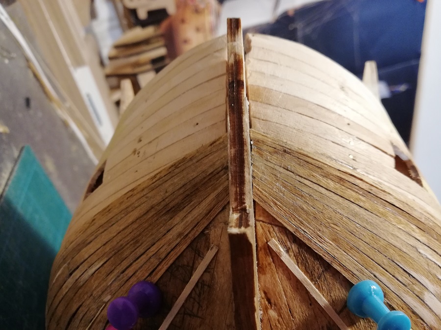 Cześć. Próbujesz wygiąć pasek forniru w części dziobowej przed przyklejeniem? Ja tak robiłem przy Smoku, a też ma dość "kulisty" kształt dziobu.