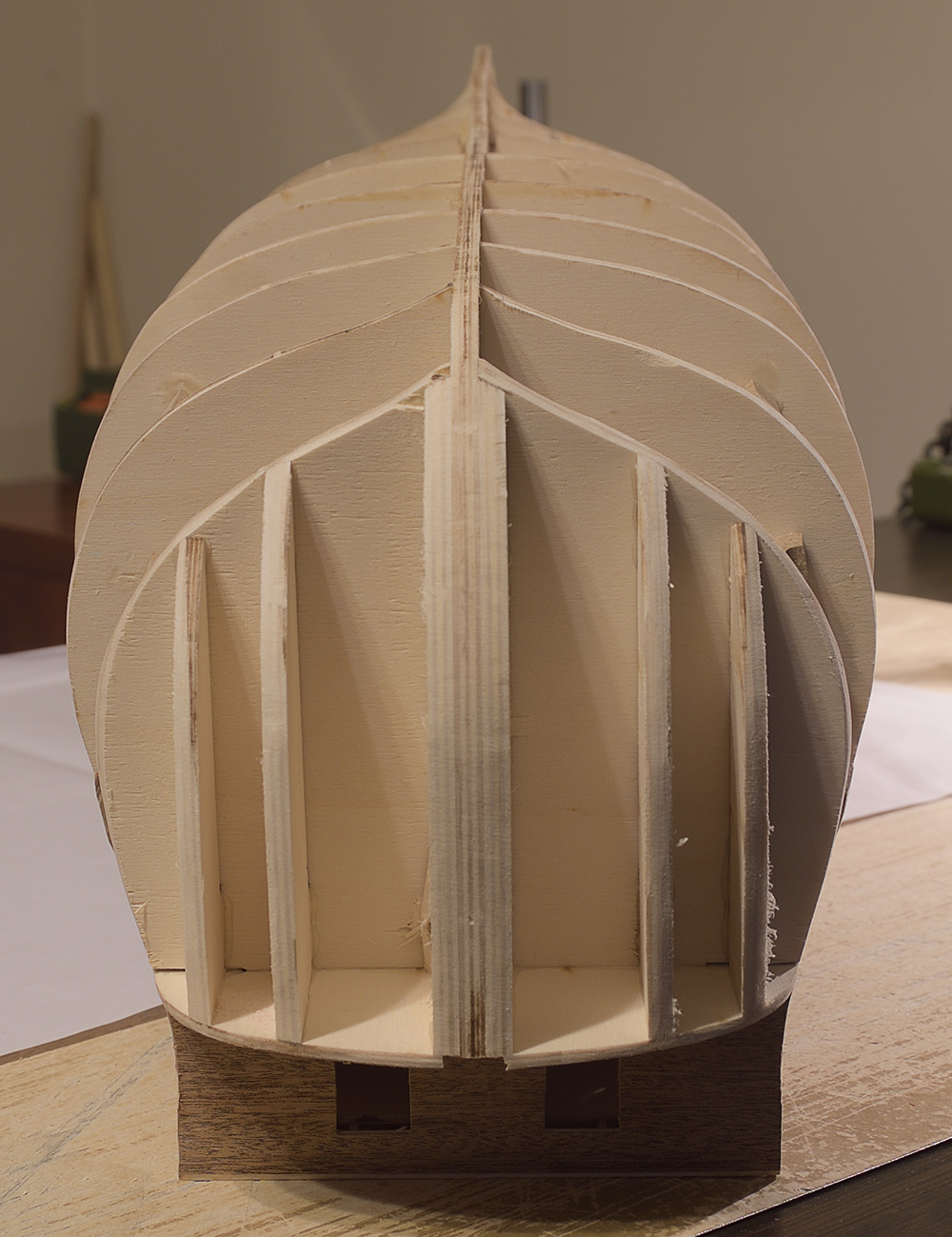Szkielet od strony dziobu, trzeba przewiercić wzmocnienie na bukszpryt