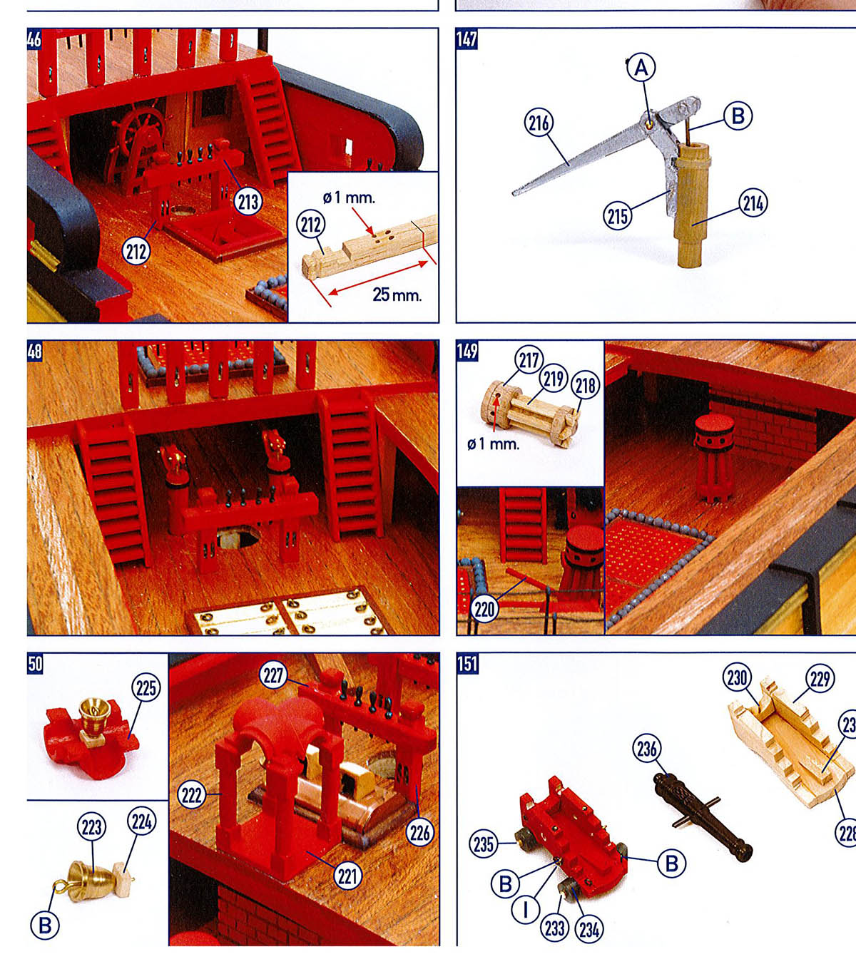 Po pierwsze, czemu na tym etapie juz modelujesz i instalujesz lawety i dziala, nie poszywszy jeszcze kadluba? Potem bedziesz mial problemy z poszywaniem burt, gdy dziala beda wystawac na zewnatrz i ciagle bedziesz je nieumyslnie wylamywal z ich miejsc podczas prob poszywania burt.