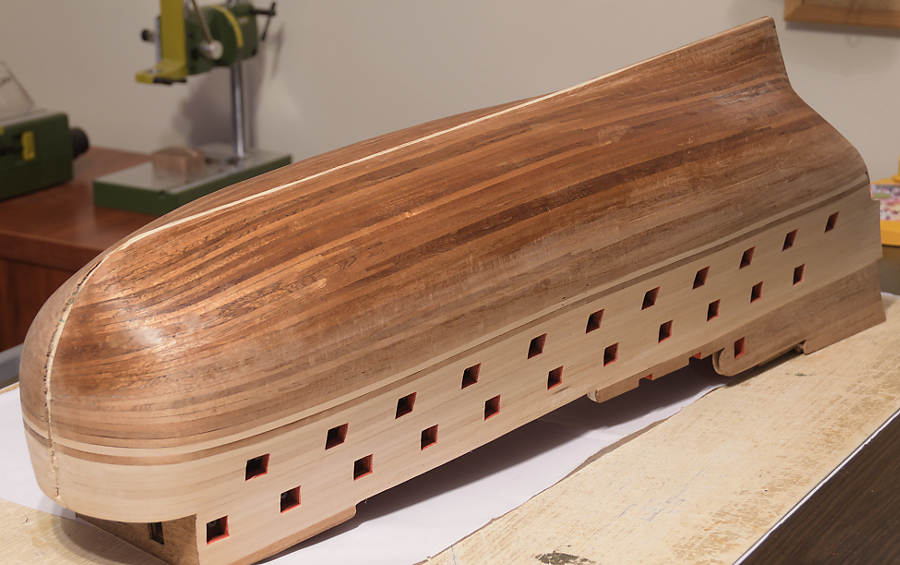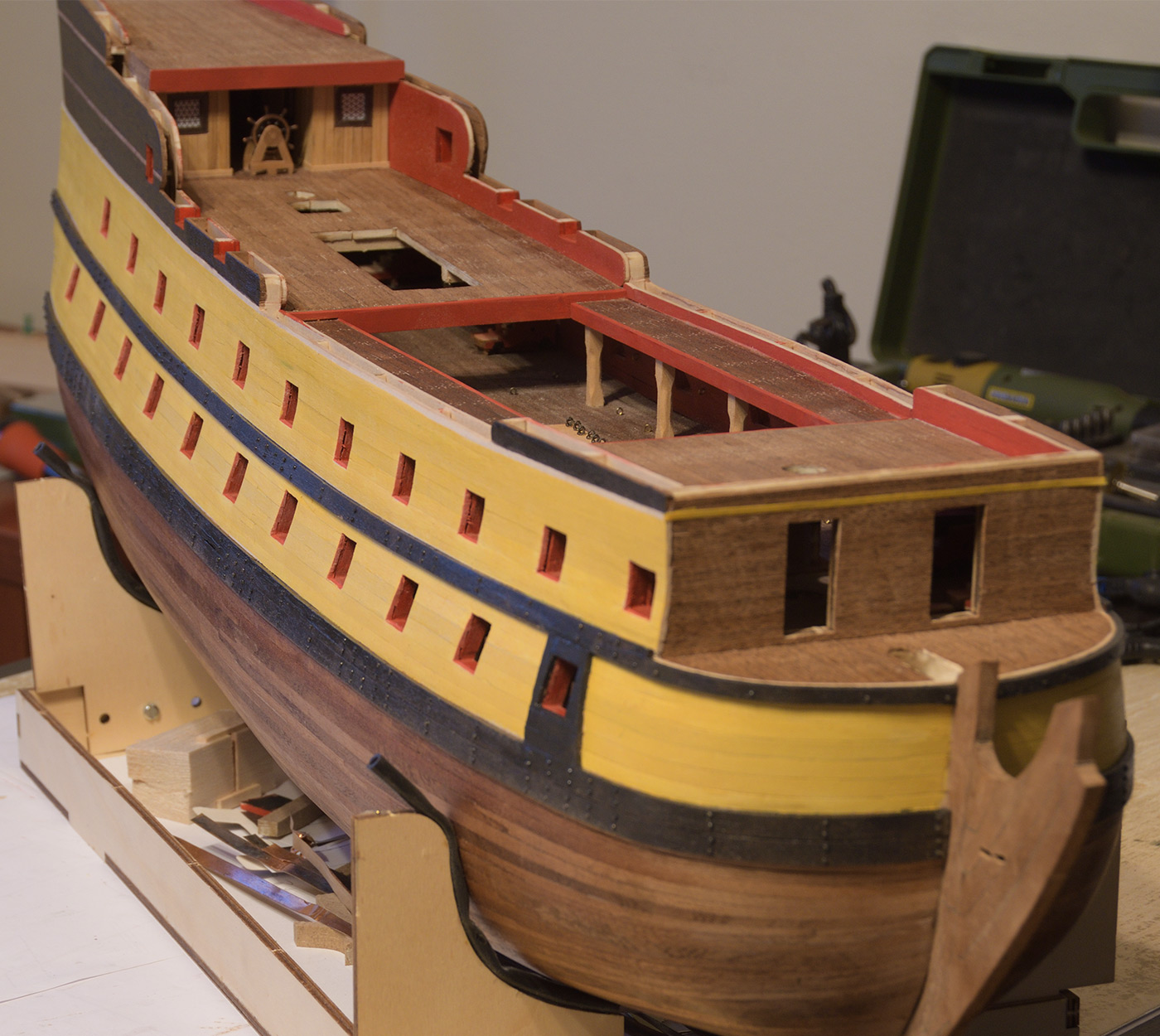 Drugim błędem jest brak poszycia na tylnicy (tuż nad stępką) - niestety etap całkowicie pomijany w zestawach i kolekcjach zeszytowych (pisałem właśnie ostatnio o tym w grupie SOLEIL ROYAL).