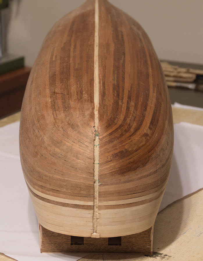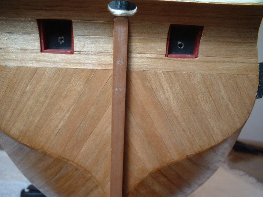 Poświęciłeś czas na modernizację stewy dziobowej, steru - to się chwali, jednak przy montażu tylnicy (stewy rufowej) ze stępką popełniłeś błąd (pewnie tak było w instrukcji, bo ten sam błąd jest w innej, znanej nam relacji) .