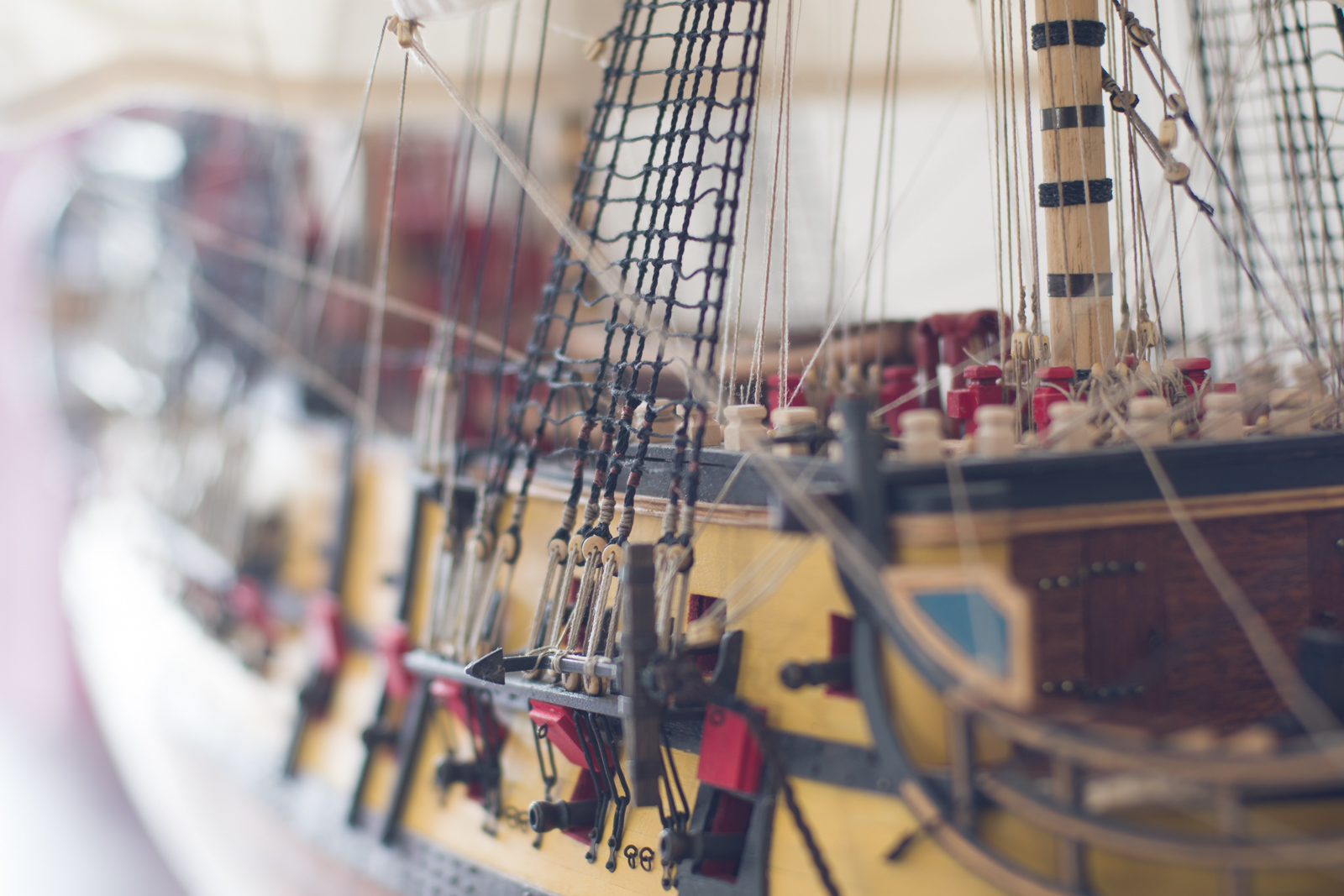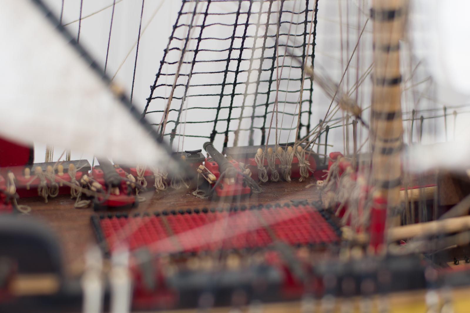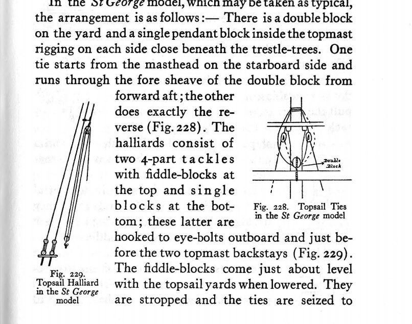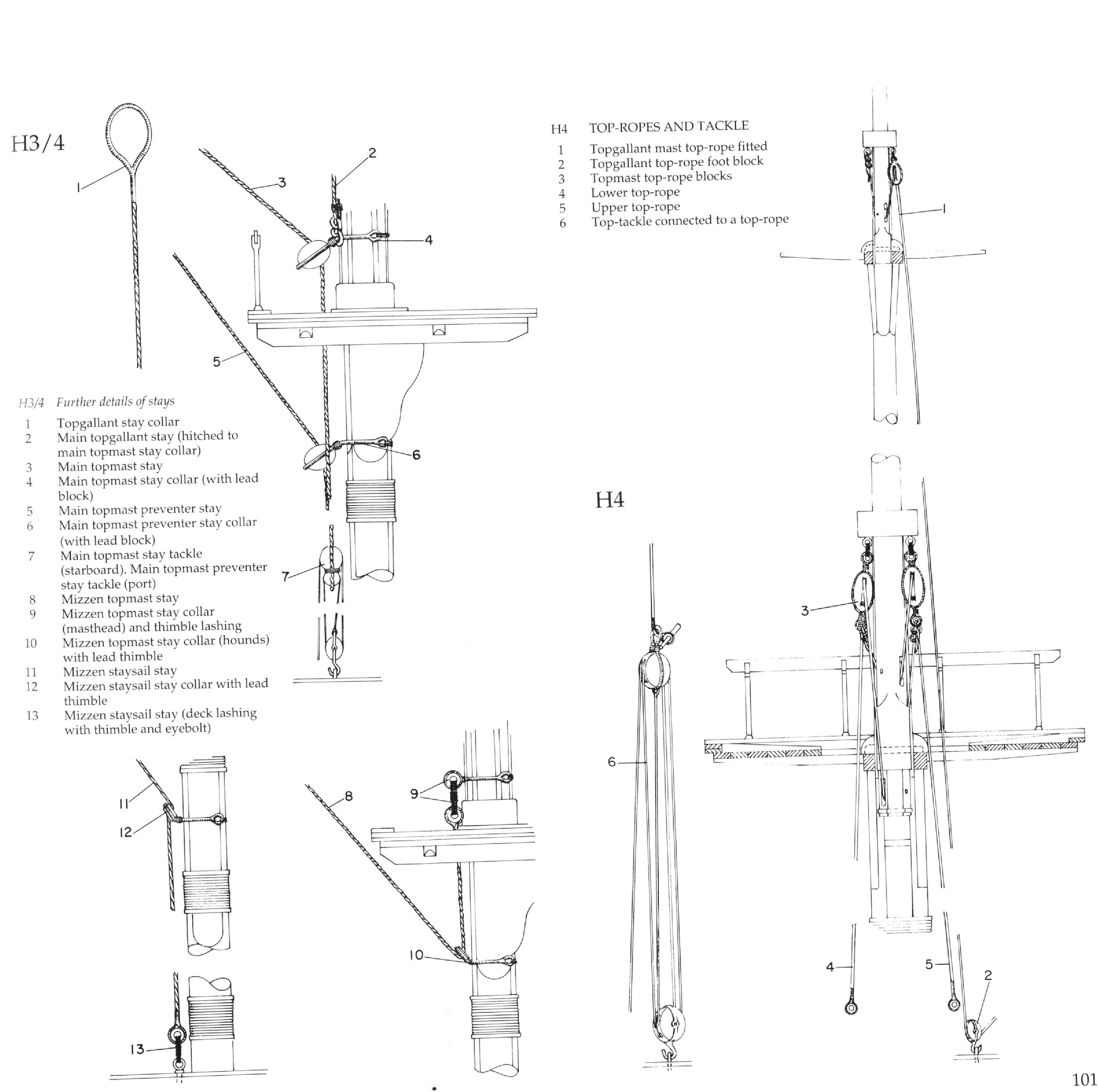 A tymczasem zbliżamy się do portu. Wyblinki wreszcie powiązałem i jeszcze trochę olinowania stałego, przymocowałem kotwice, a może coś tam więcej. Teraz rozwiązywanie łamigłówki pozostałego olinowania. Muszę przyznać, że Wasze rysunki są "trochę" dokładniejsze