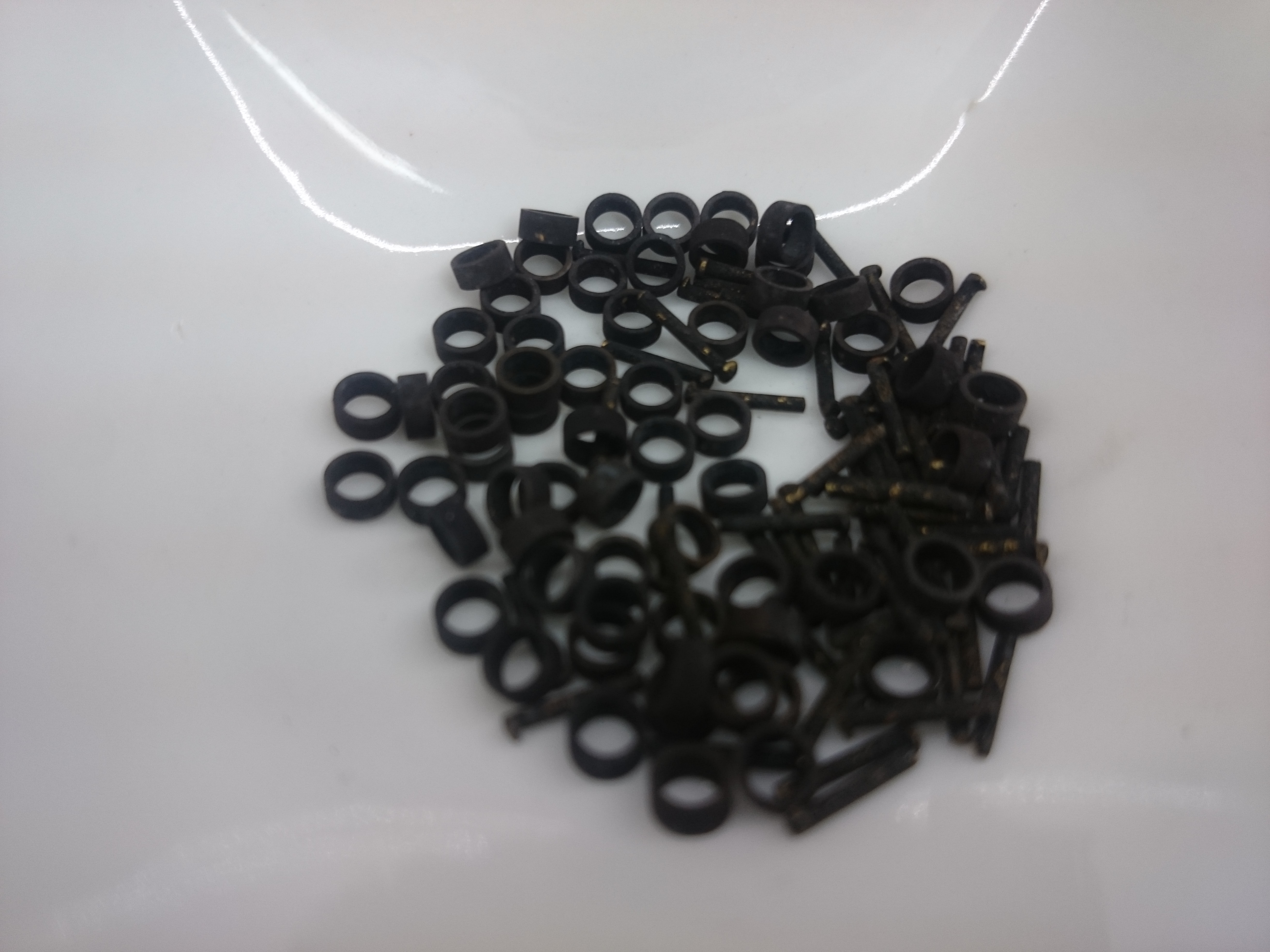 Wszystkie wsypałem i po kolei wyciągałem do płukania. te które zostały najdłużej w preparacie przypłaciły to wżerami i odpadnięciem oksydy z elementu.