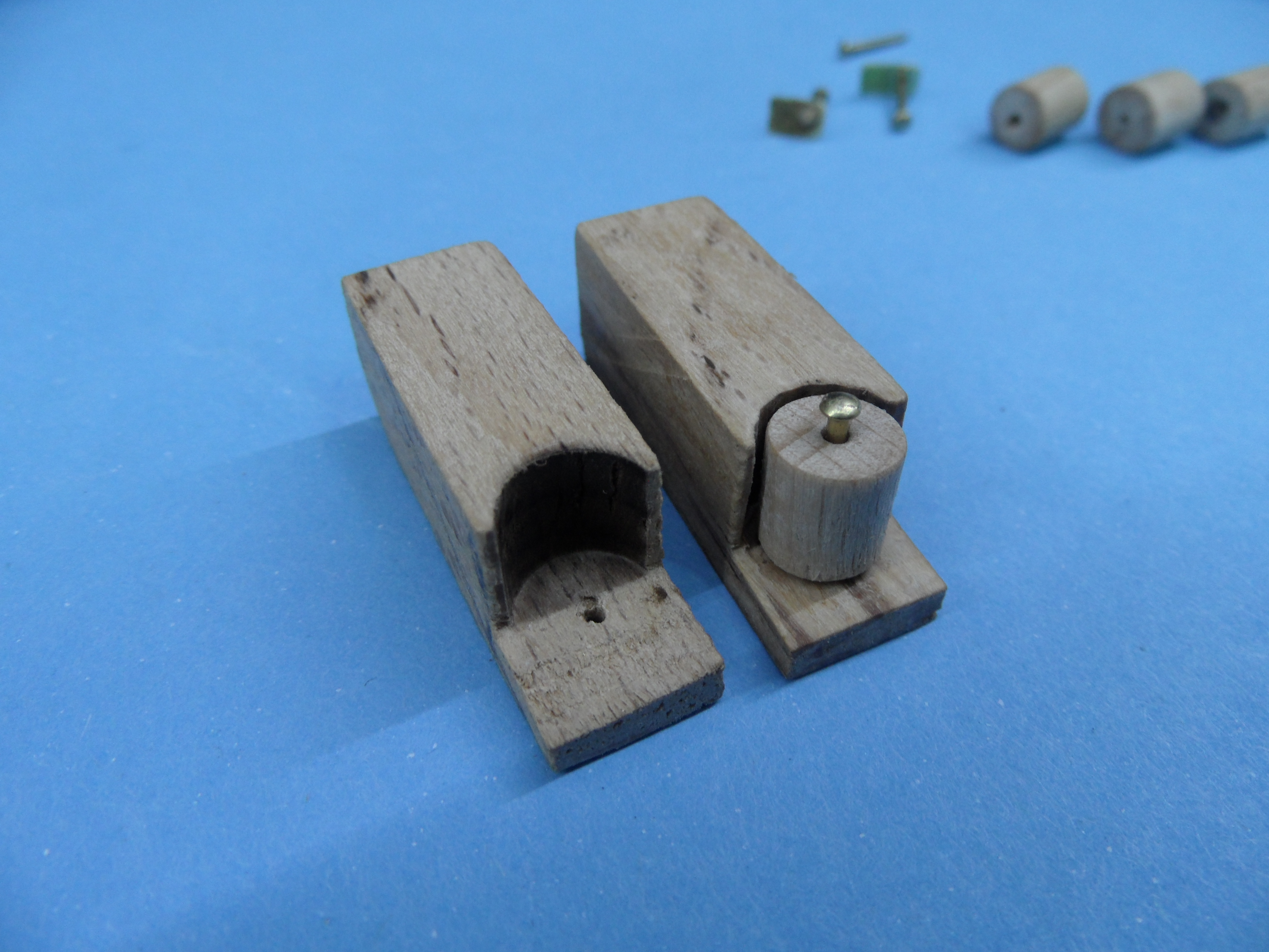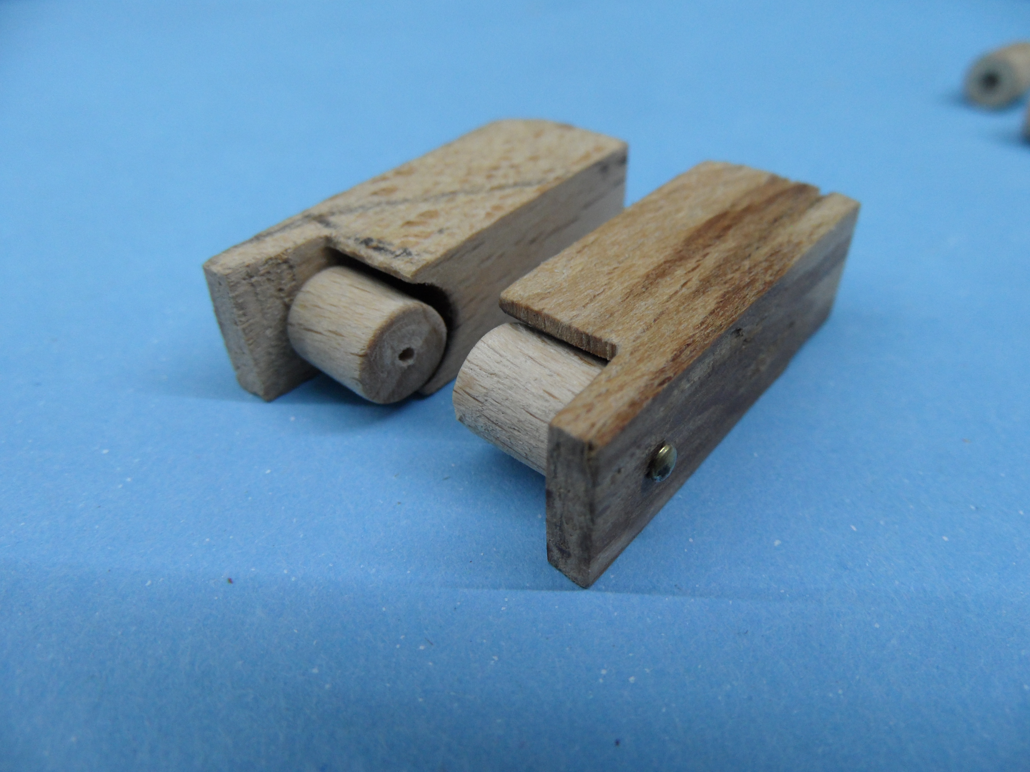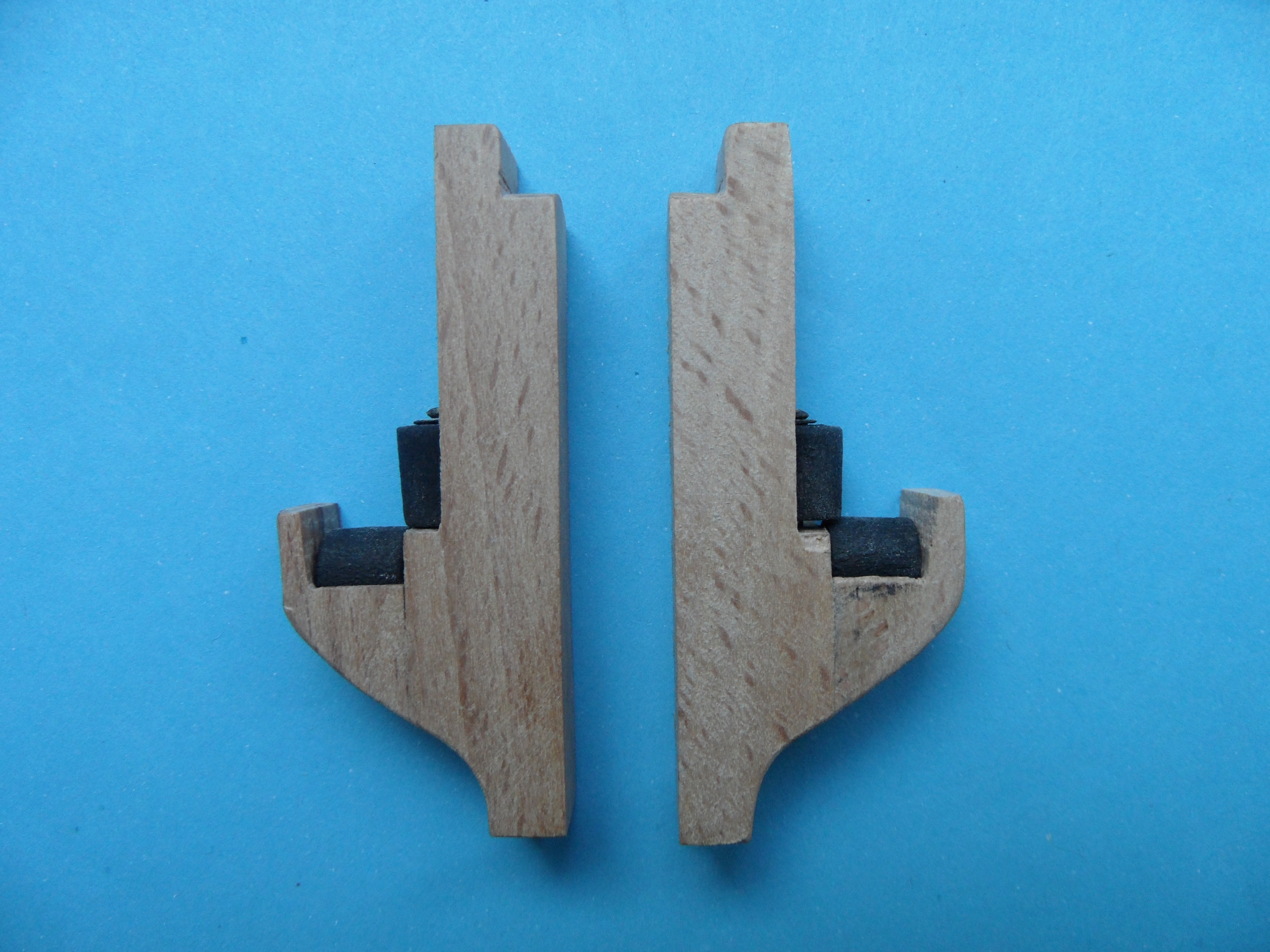 b. rolki wykonane z wałka bukowego fi 10 mm do średnicy fi 6 mm przy pomocy małej tokarki, dłutka i pilnika płaskiego