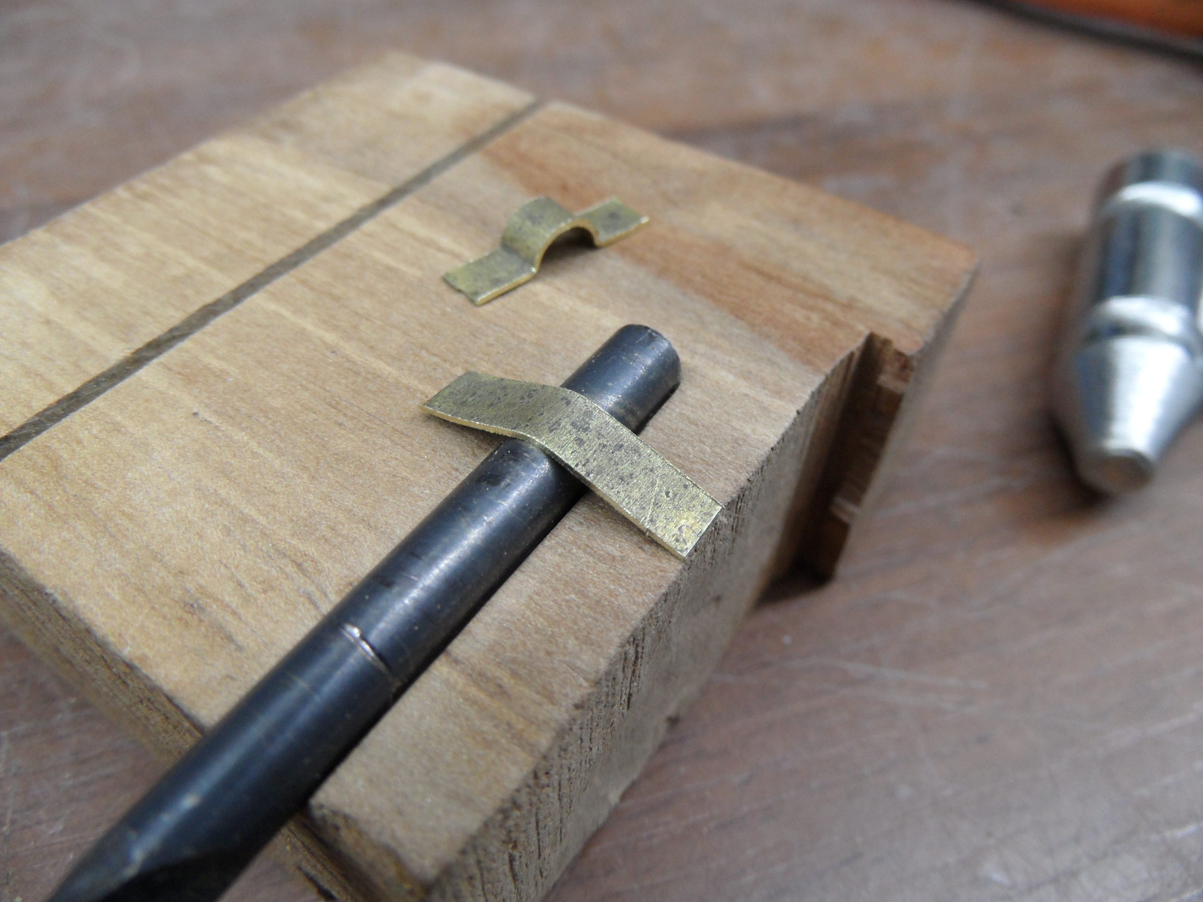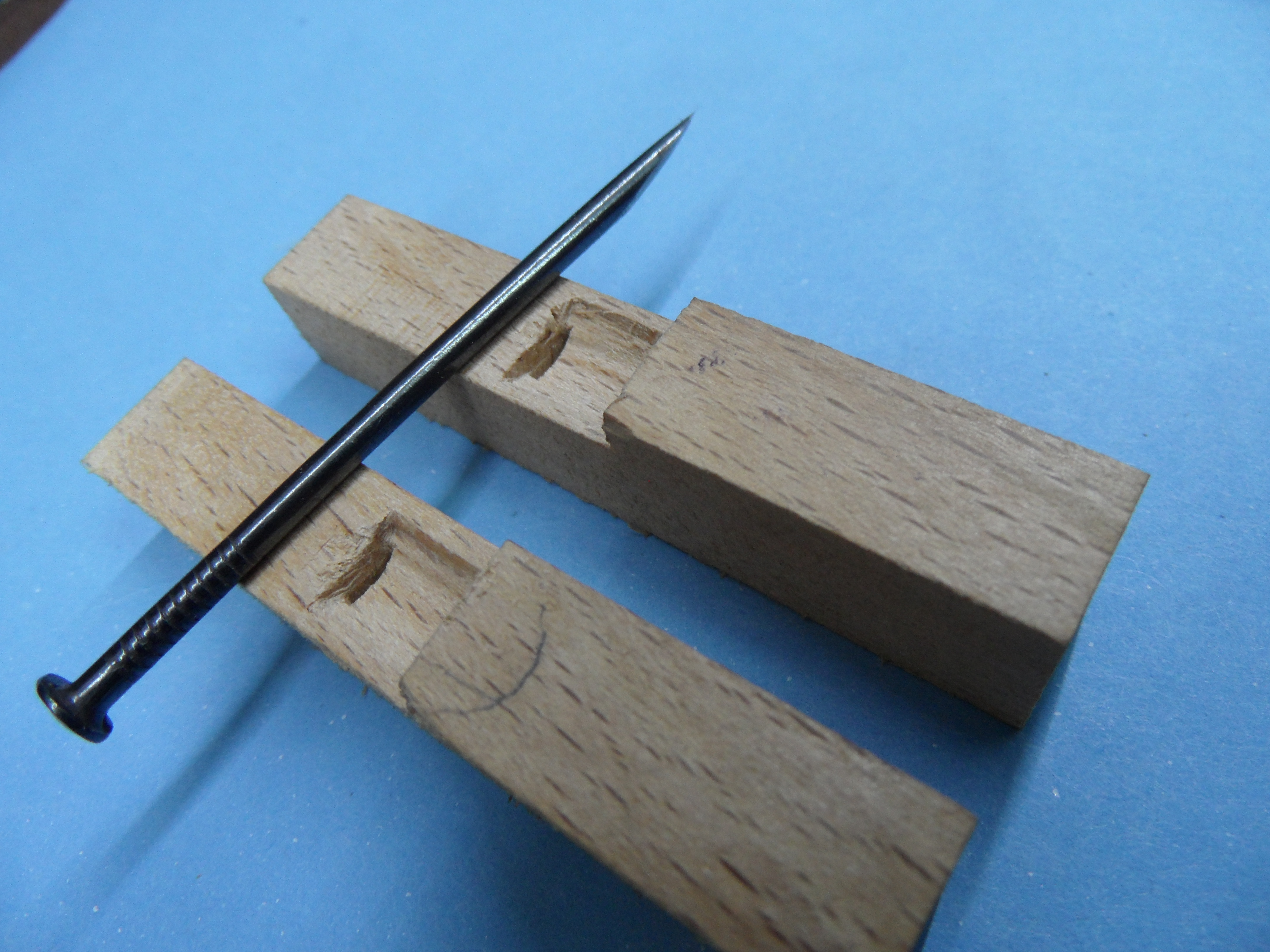 - miejsce mocowania uchwytów wykonane dłutem zrobionym z gwoździa