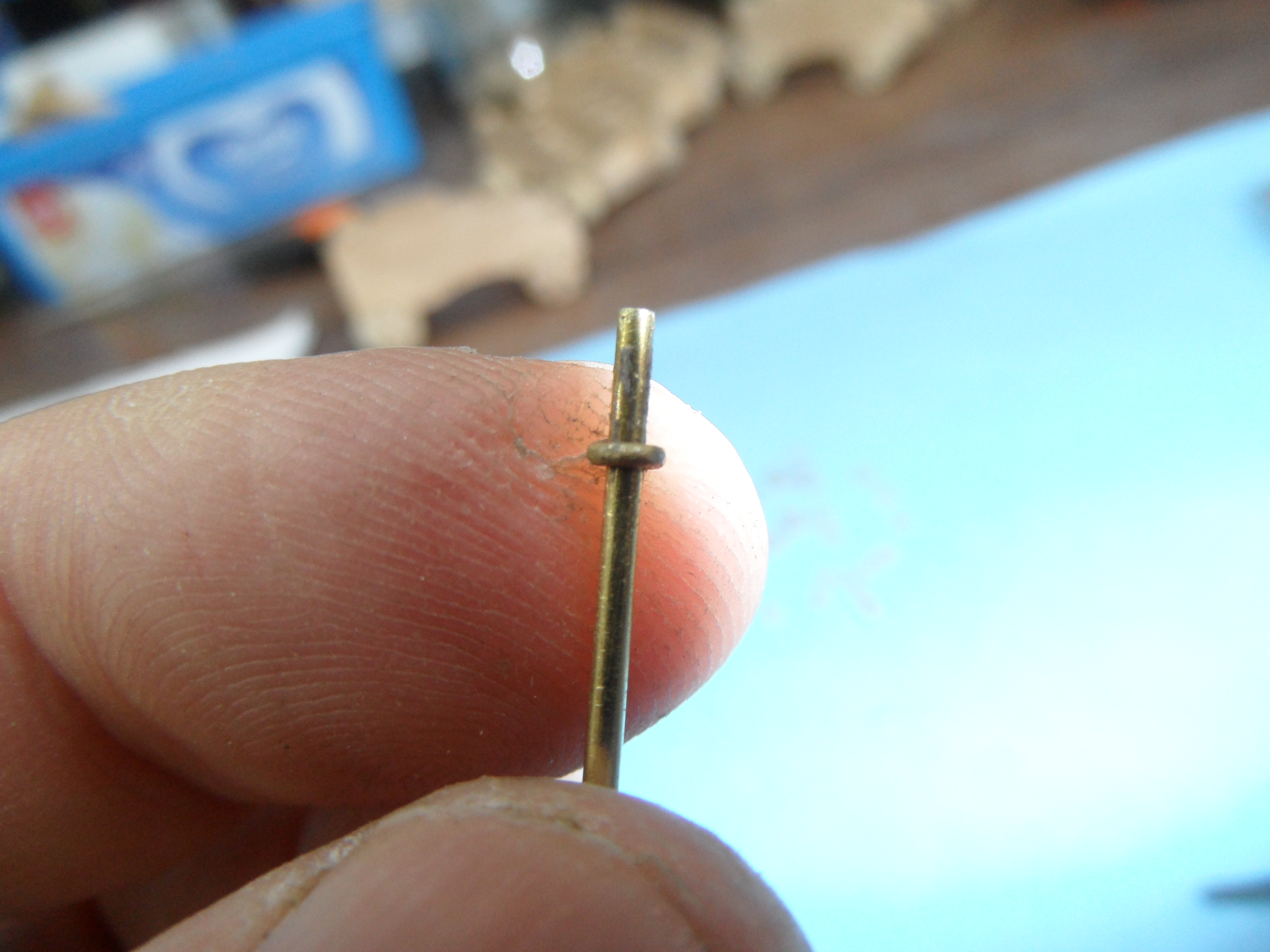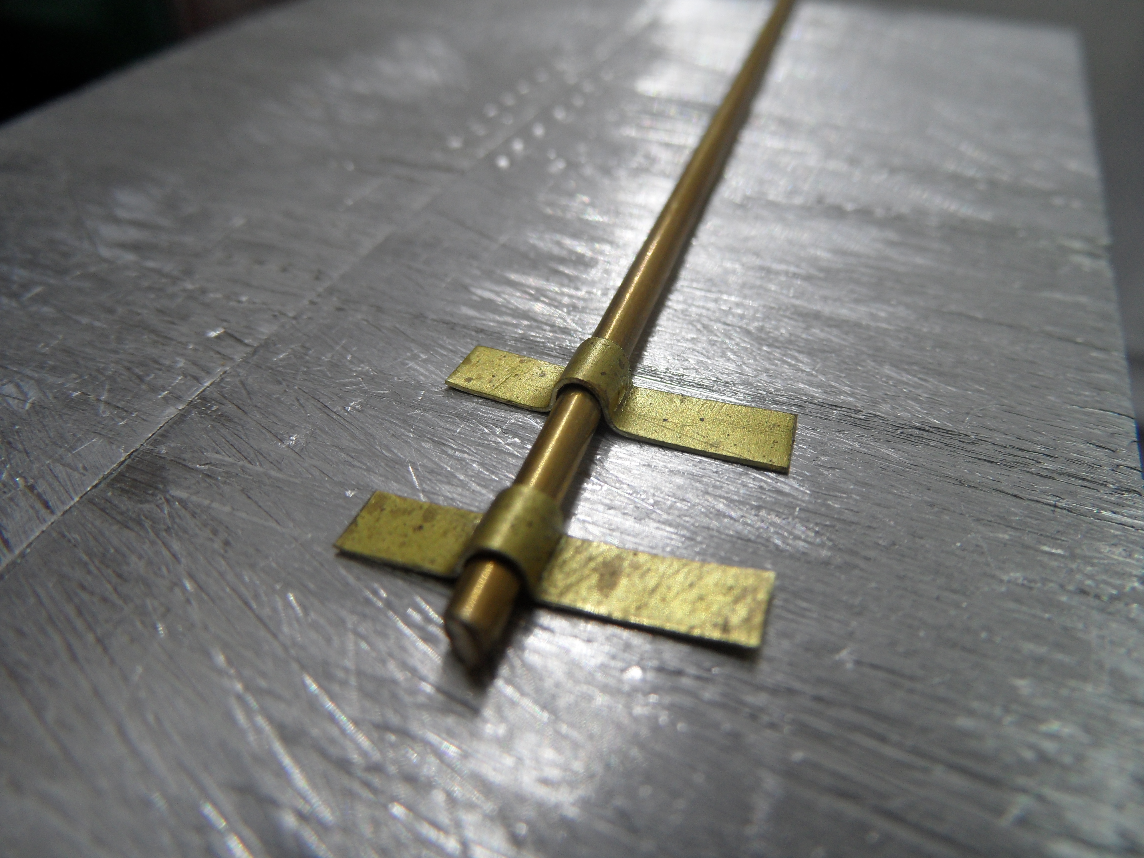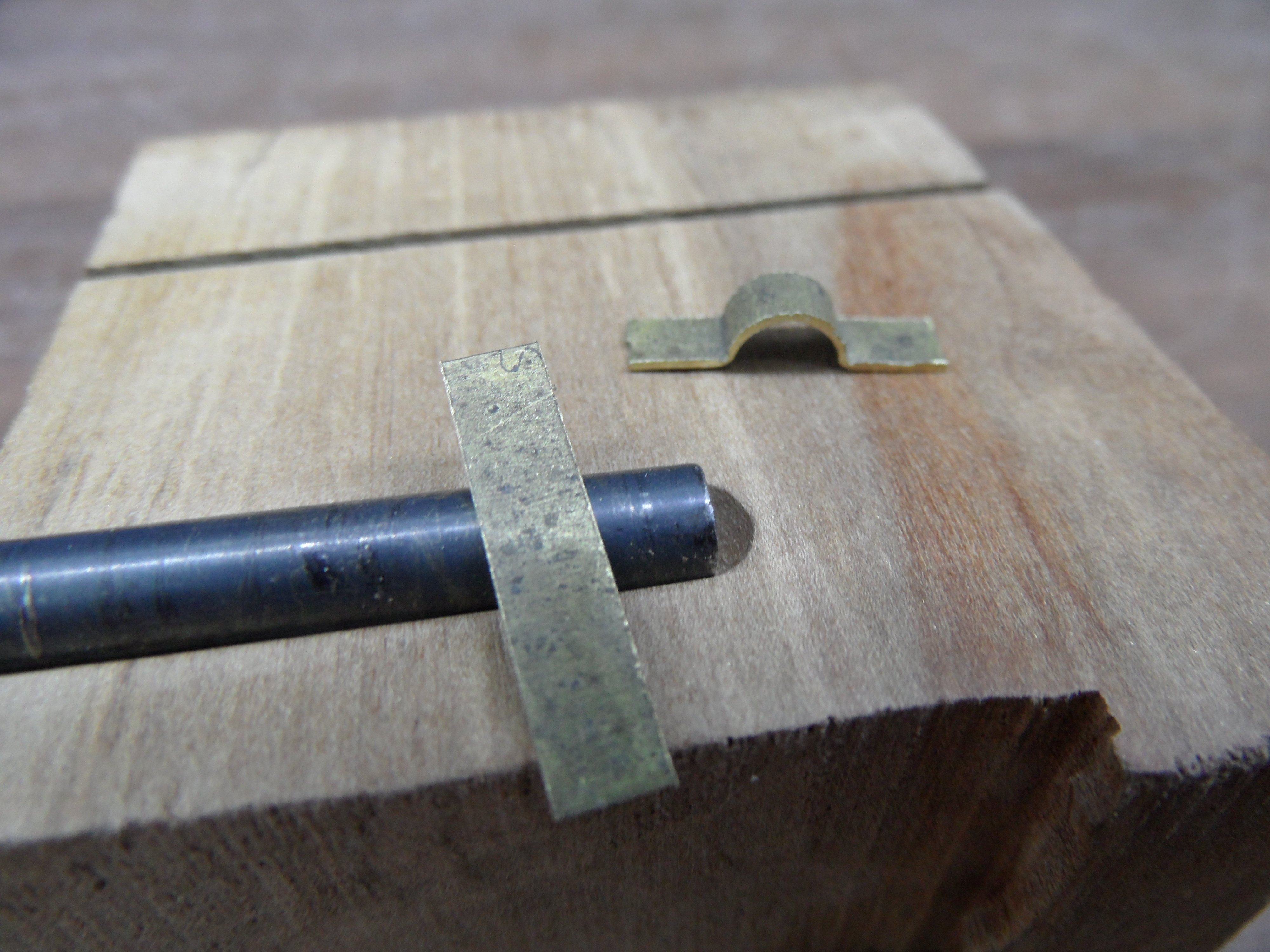 Wyżarzony nad palnikiem gazowym kuchenki drut fi 0,7 nawinięty na drut osi 1,2 mm.