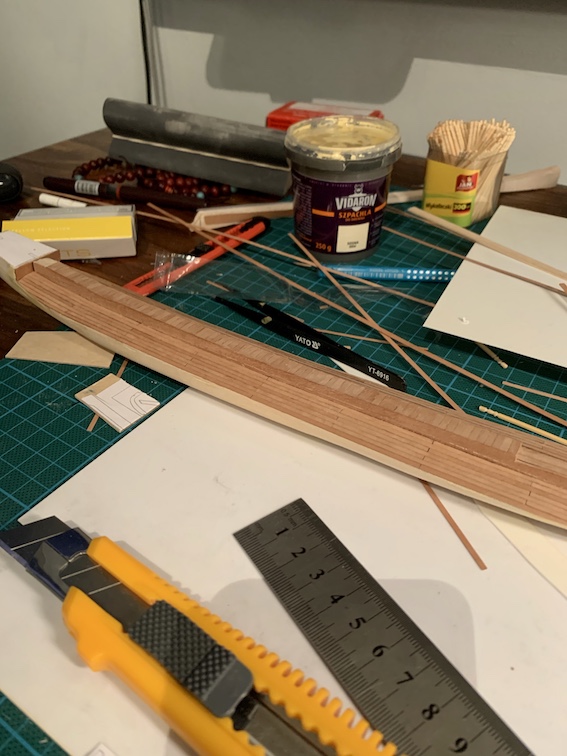 Plany fajne, aczkolwiek moja ignorancja skutkowała podwójnym podejściem do przenoszenia linii kadłuba na drewno (nawet się nie rozwodzę bo wstyd być tak nieogarniętym).