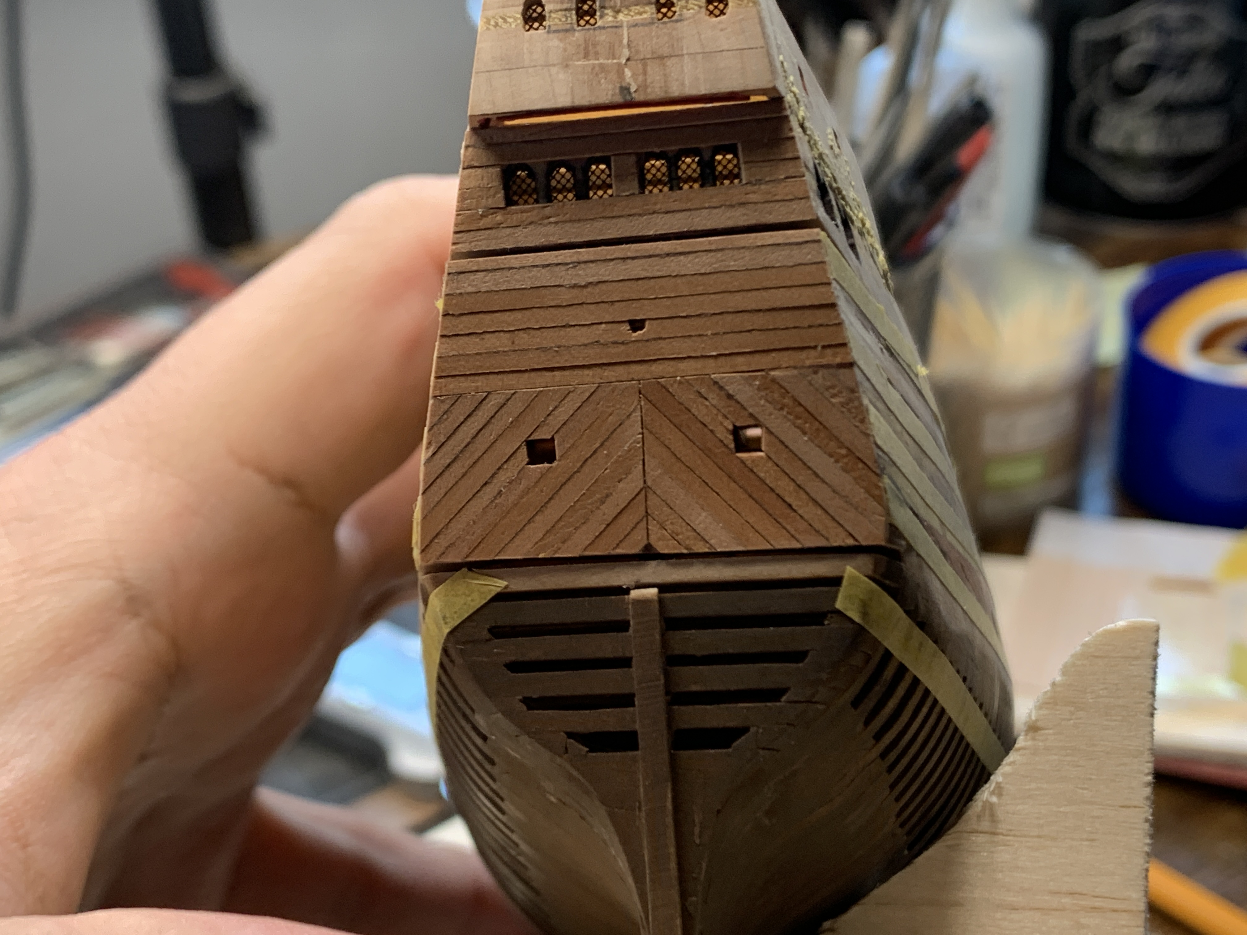 Można powiedzieć, że dopełznąłem do końca pewnego etapu. Poopdeck zamknięty. Będzie jeszcze trochę pokładów ale to dopiero przy okazji ronienia burt.