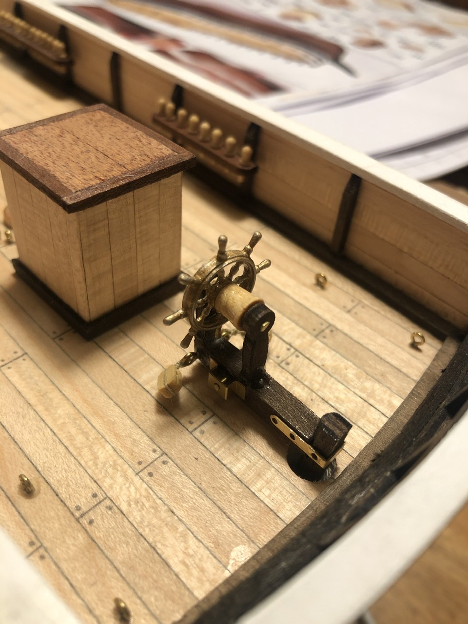 No i przykleiłem kilka kolejnych wykonanych elementów do pokładu. Następny krok to koło sterowe i 4 szalupy - tego elementu się trochę obawiam, czy uda mi się ładnie wykonać.