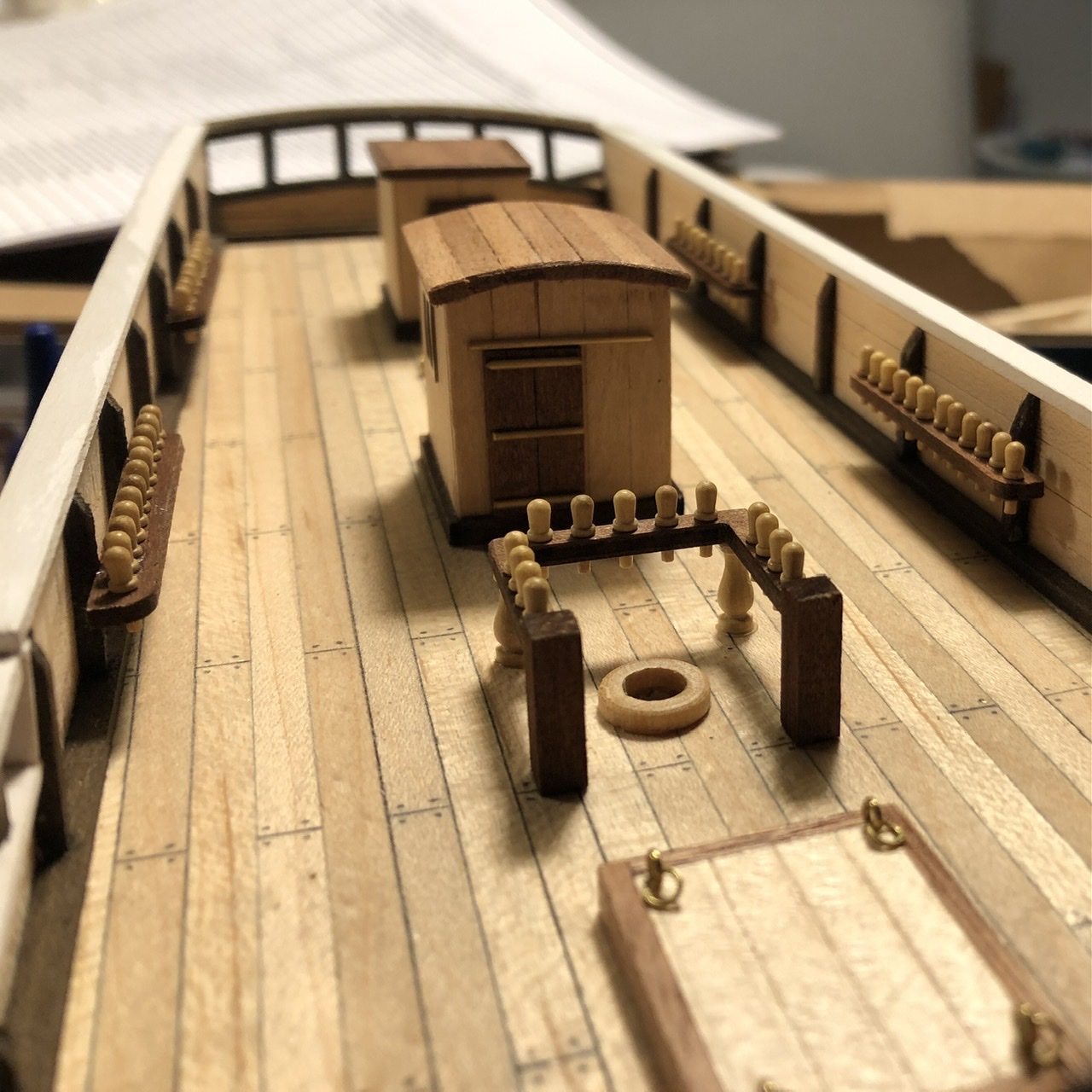 No i przykleiłem kilka kolejnych wykonanych elementów do pokładu. Następny krok to koło sterowe i 4 szalupy - tego elementu się trochę obawiam, czy uda mi się ładnie wykonać.