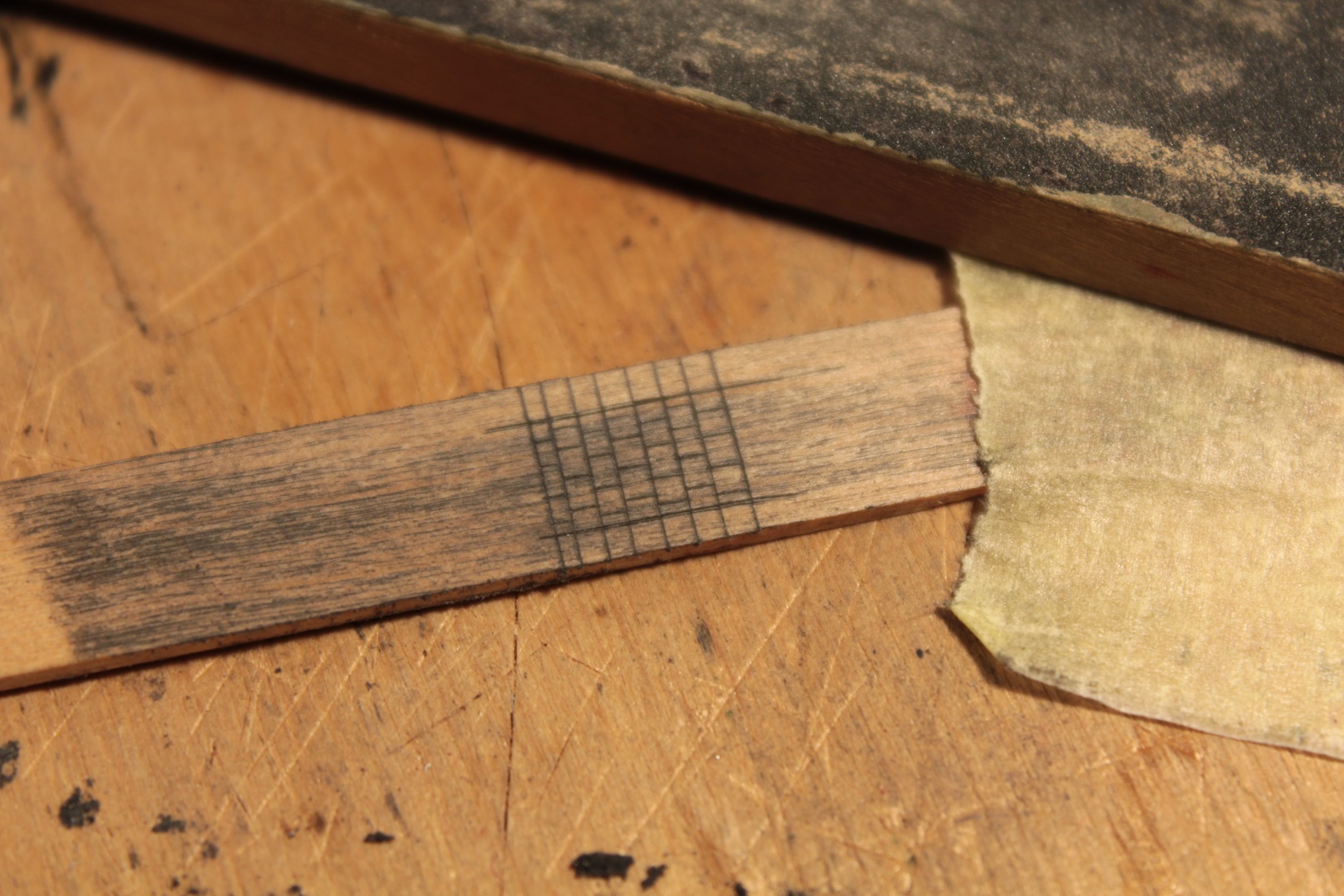 Na listewce dużo grubszej niż końcowy wymiar naniosłem skalpelem linie podziału cegieł czy też terakotowych płyt(?)