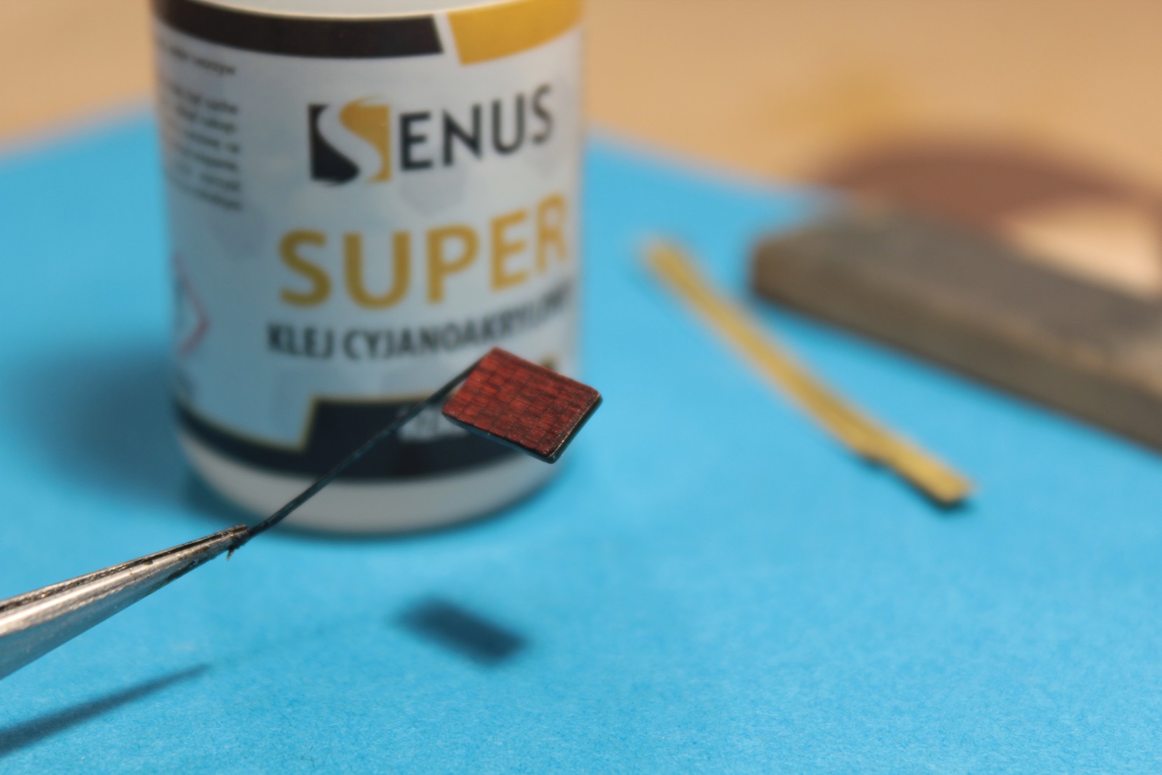 Gdy bejca z tuszem wyschła wtarłem kapon. Klejem CA przykleiłem poczernioną Bradimem mosiężną opaskę z blaszki 0,1 mm