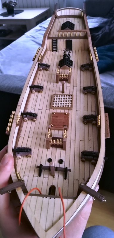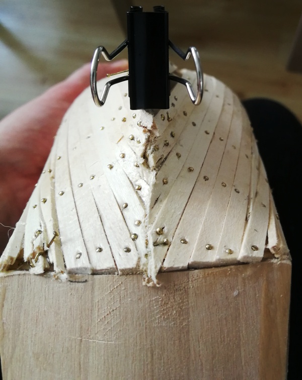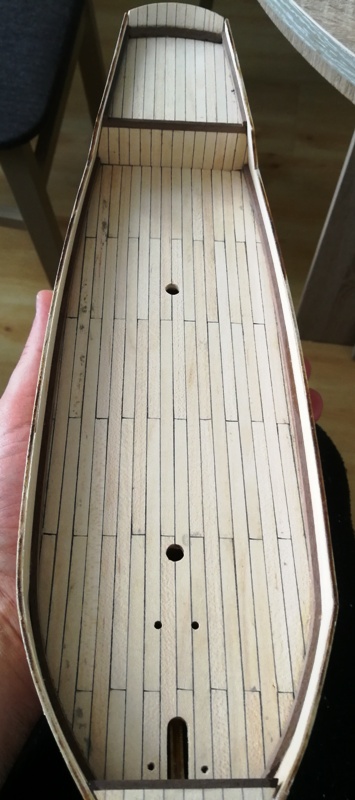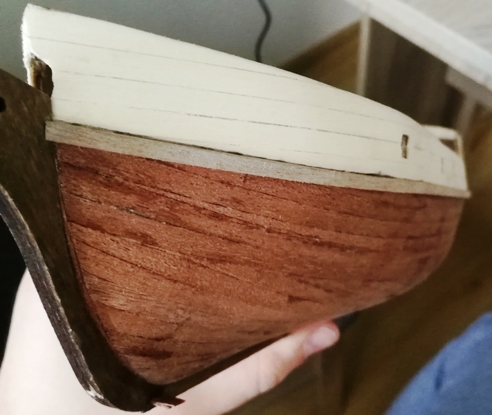 Mi się wydaje, że będę poszywac kadłub od niższego pokładu "działowego" , tam gdzie bukszpryt/ Dziób zaczyna się wydłużać , ma to sens? .
