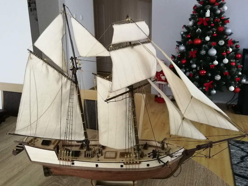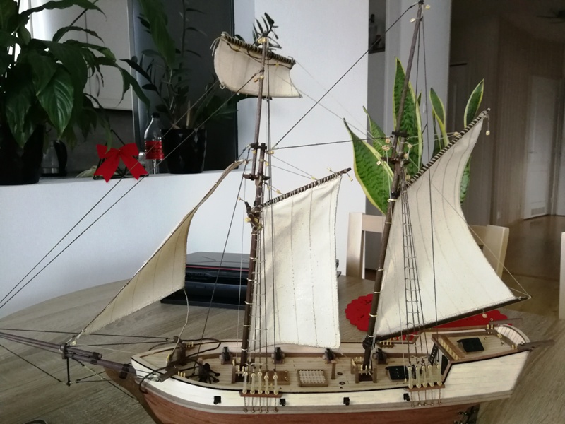 Na chwilę obecną kadłub (fornirowy) Albatrosa nie jest niczym pokryty, zakupiłem nawet tung Oil, ale to cholerstwo jest tłuste od paru dni (próbne testy na fornirze robione) . A u mnie dość często model idze w łapki ciekawskich.