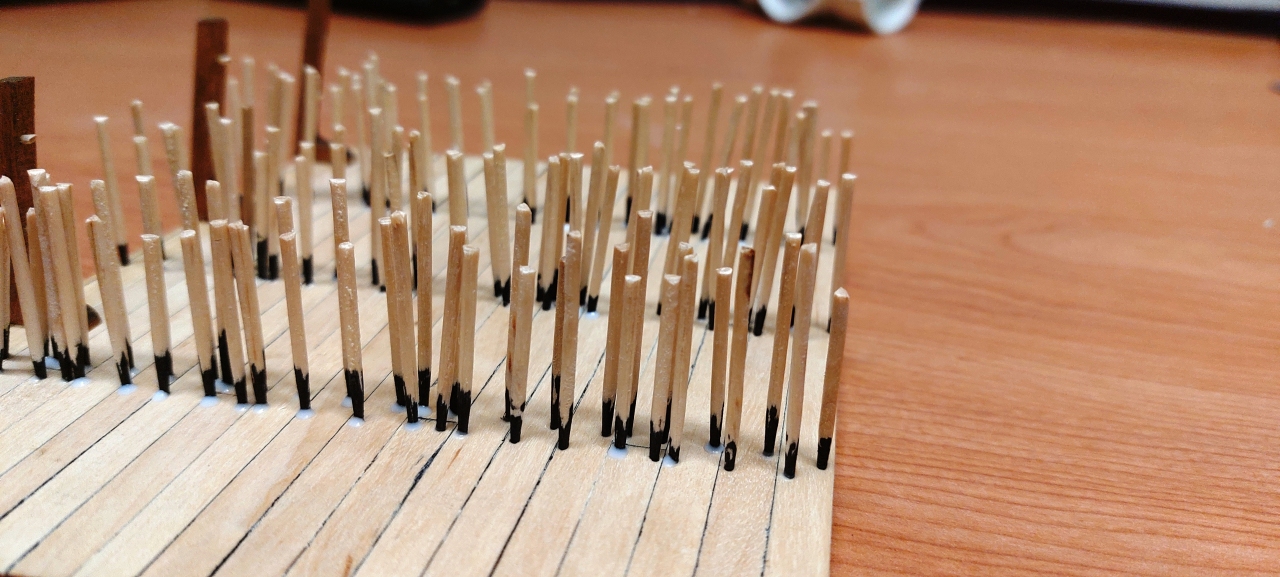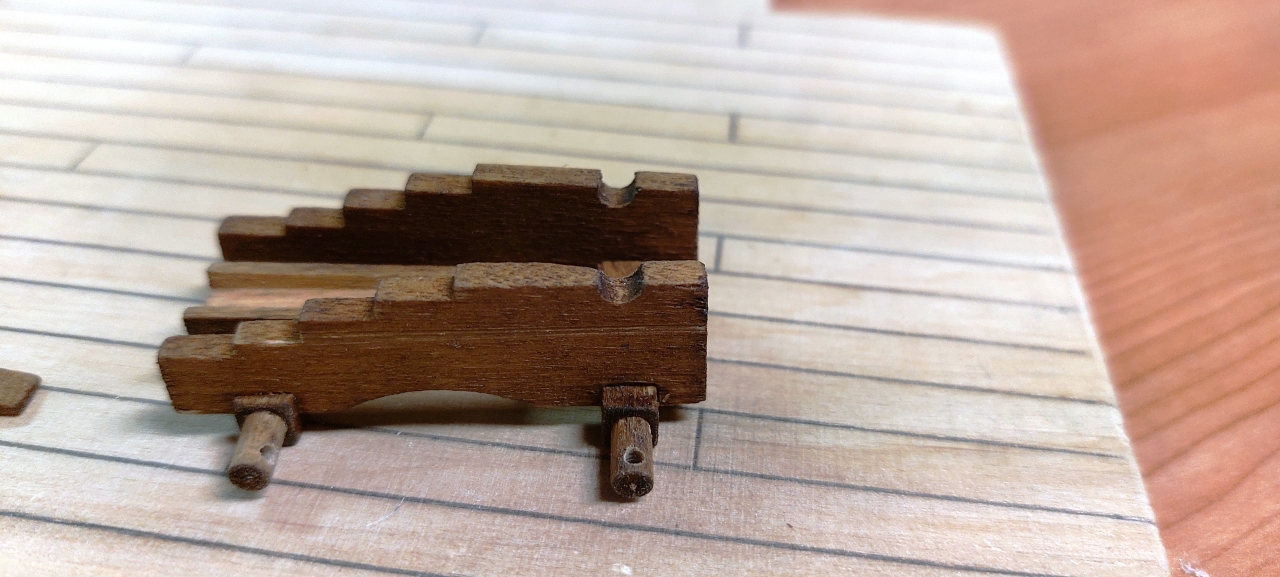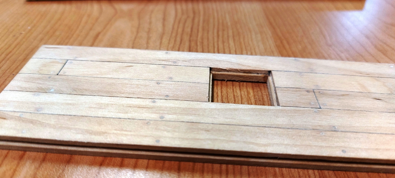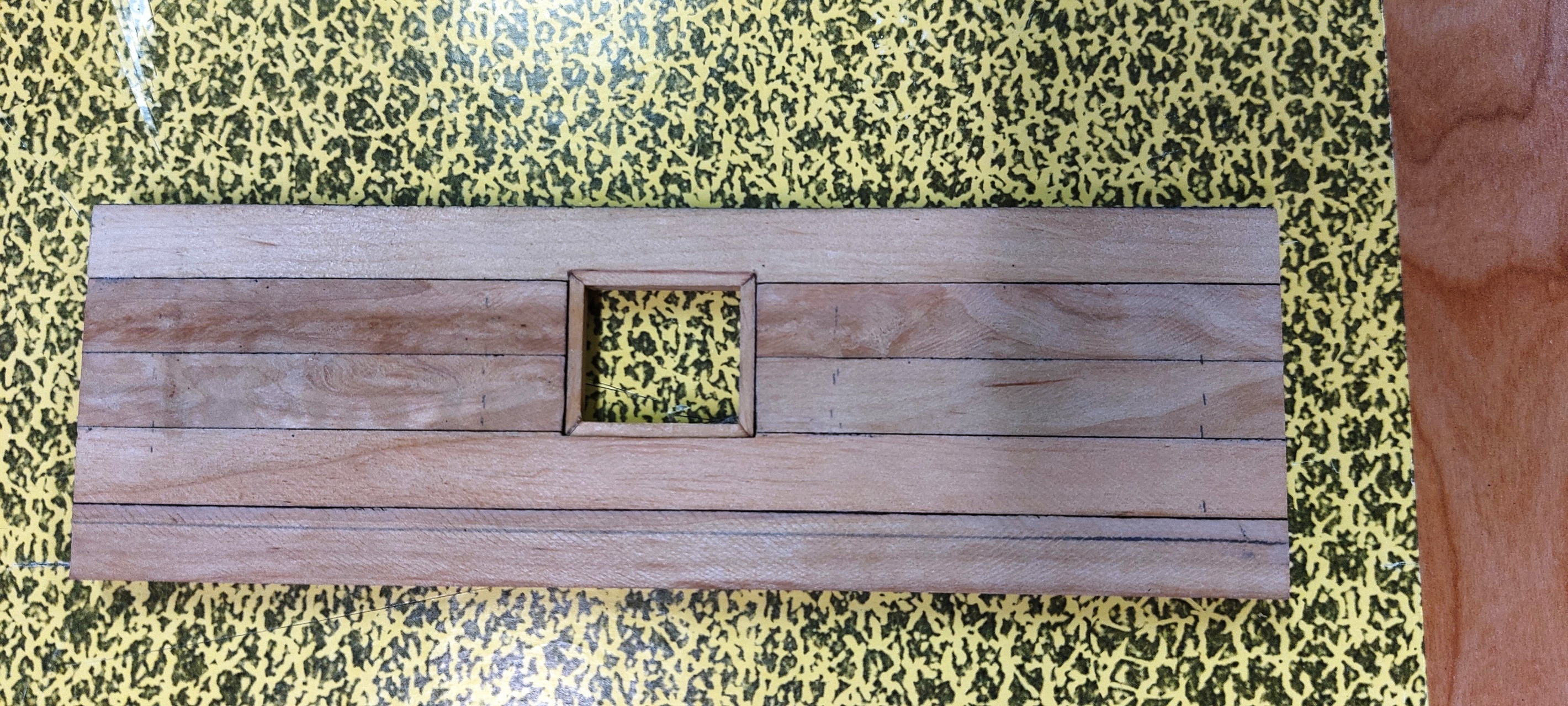 Pokład Nie byłem zachwycony z efektów, więc rozwiercilem wszystko i postanowiłem wbić normalne kolki bez malowania markerem dookoła. Burtą ciąg dalszy Laweta Bloczki Mocowanie lawety Efekt końcowy