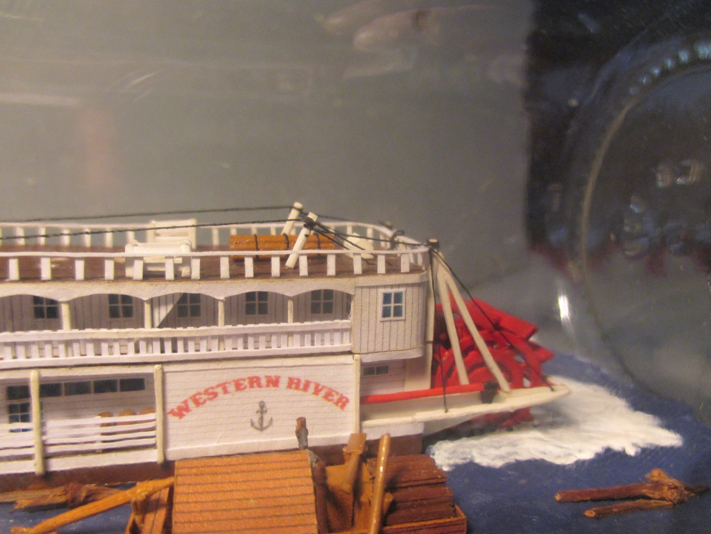 Zamontowałem zapomniane kominki i maszt.Udało się bez żadnych problemów.Ustawiłem na pomoście deski i skrzynie.Teraz czas na kominy i olinowanie.Trochę się boję tej operacji.Szkoda byłoby coś sknocić na koniec budowy.