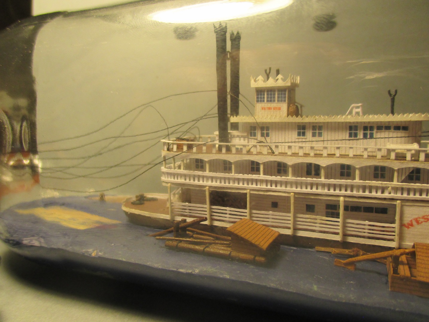 To już jest koniec relacji z budowy.Wszystkie części są na swoim miejscu.Było ich chyba 41.Butelka zakorkowana i ustawiona na półce obok innej butelki, którą wypełniłem 24 lata temu.