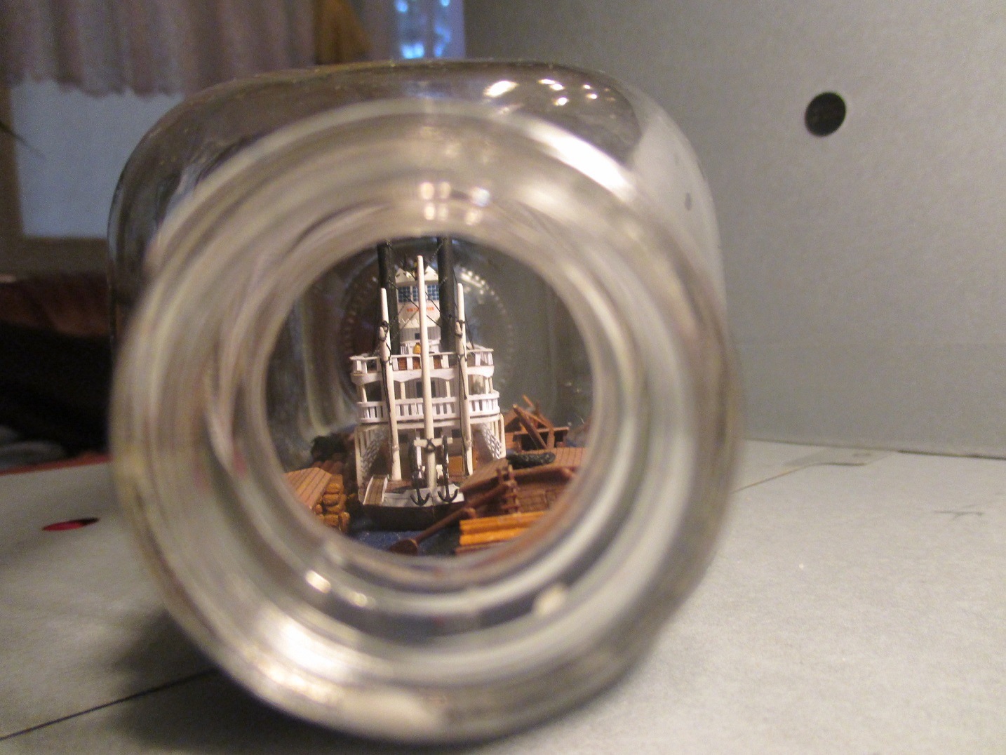 To już jest koniec relacji z budowy.Wszystkie części są na swoim miejscu.Było ich chyba 41.Butelka zakorkowana i ustawiona na półce obok innej butelki, którą wypełniłem 24 lata temu.