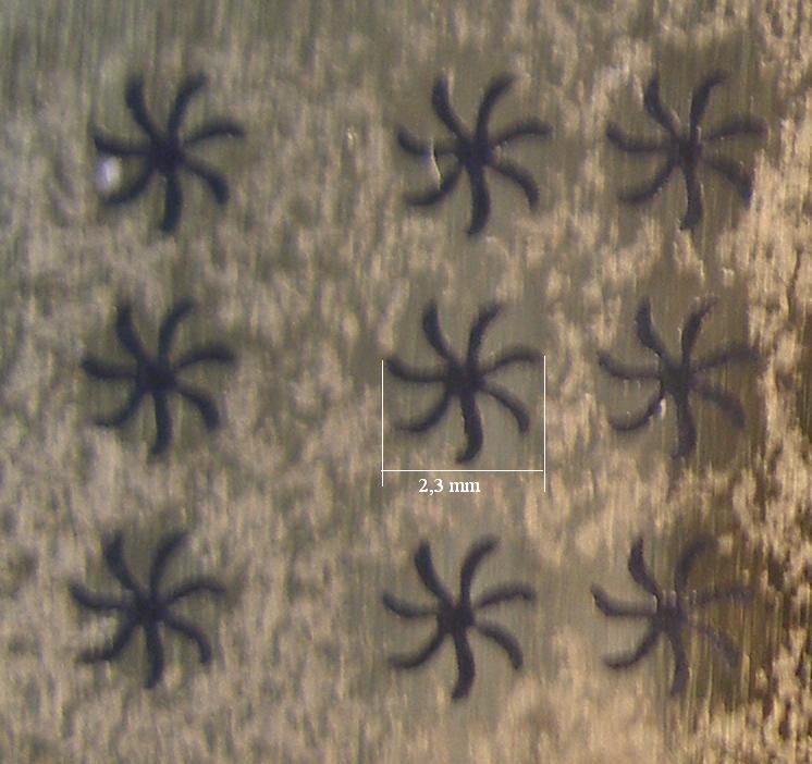 Blaszkę przykleiłem do kawałka polistyrenu 0.5 i wytrawiłem.