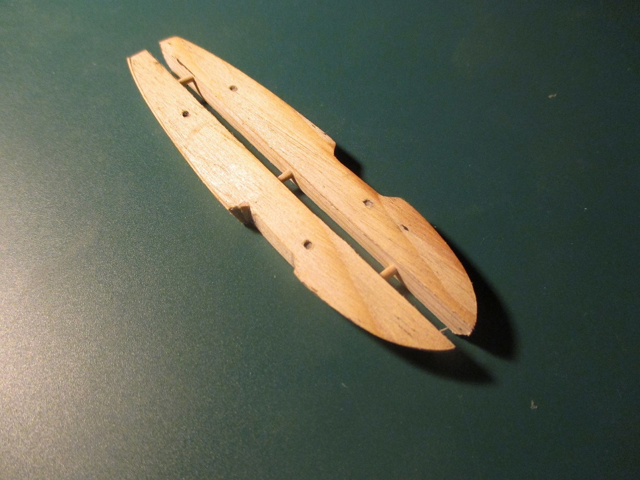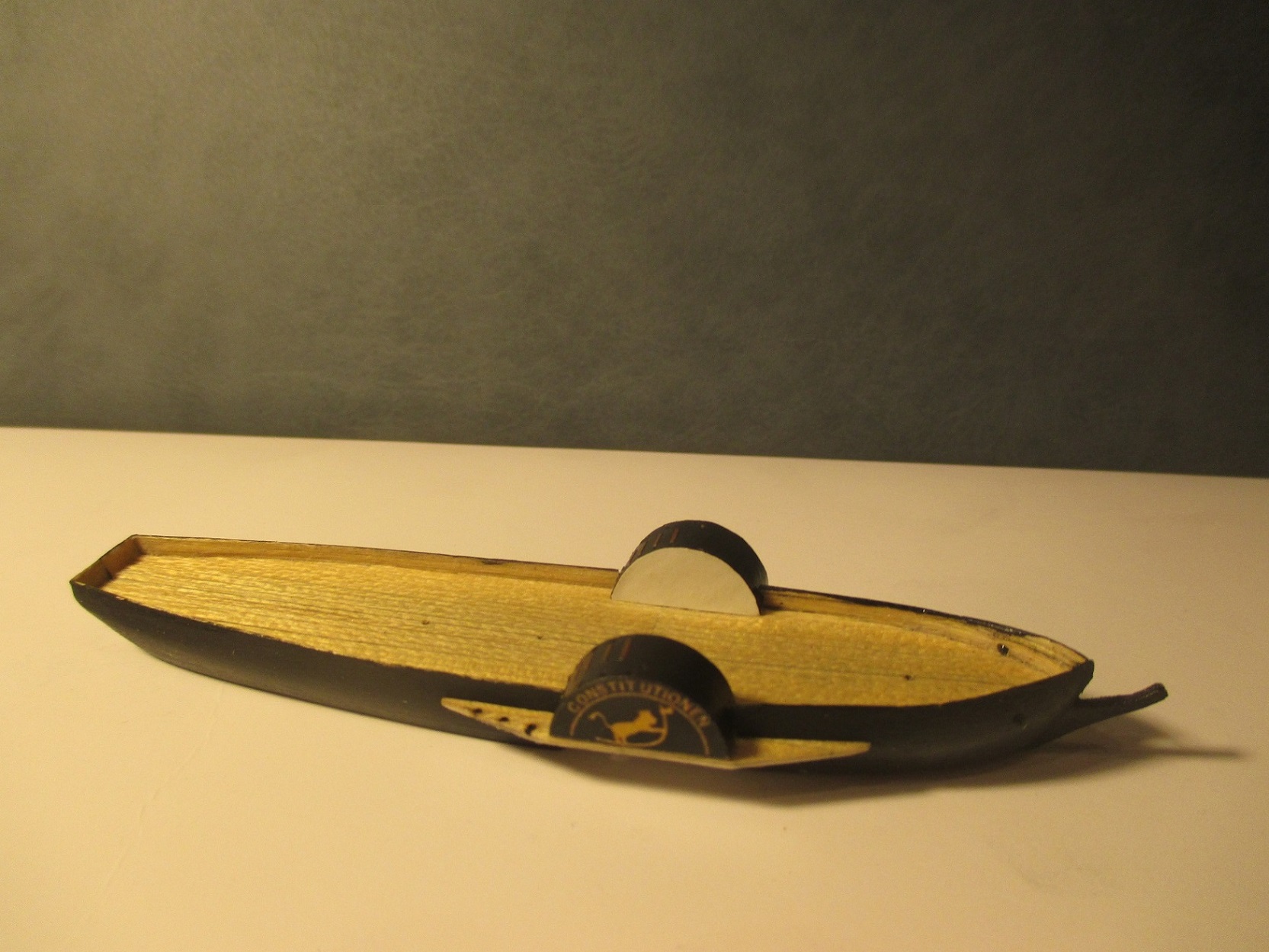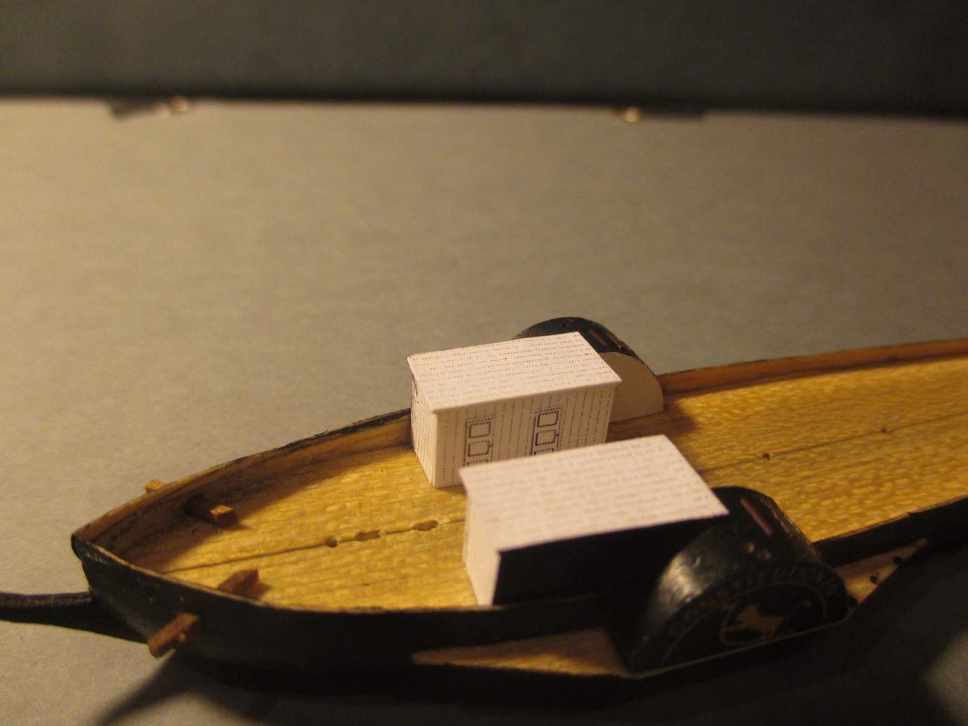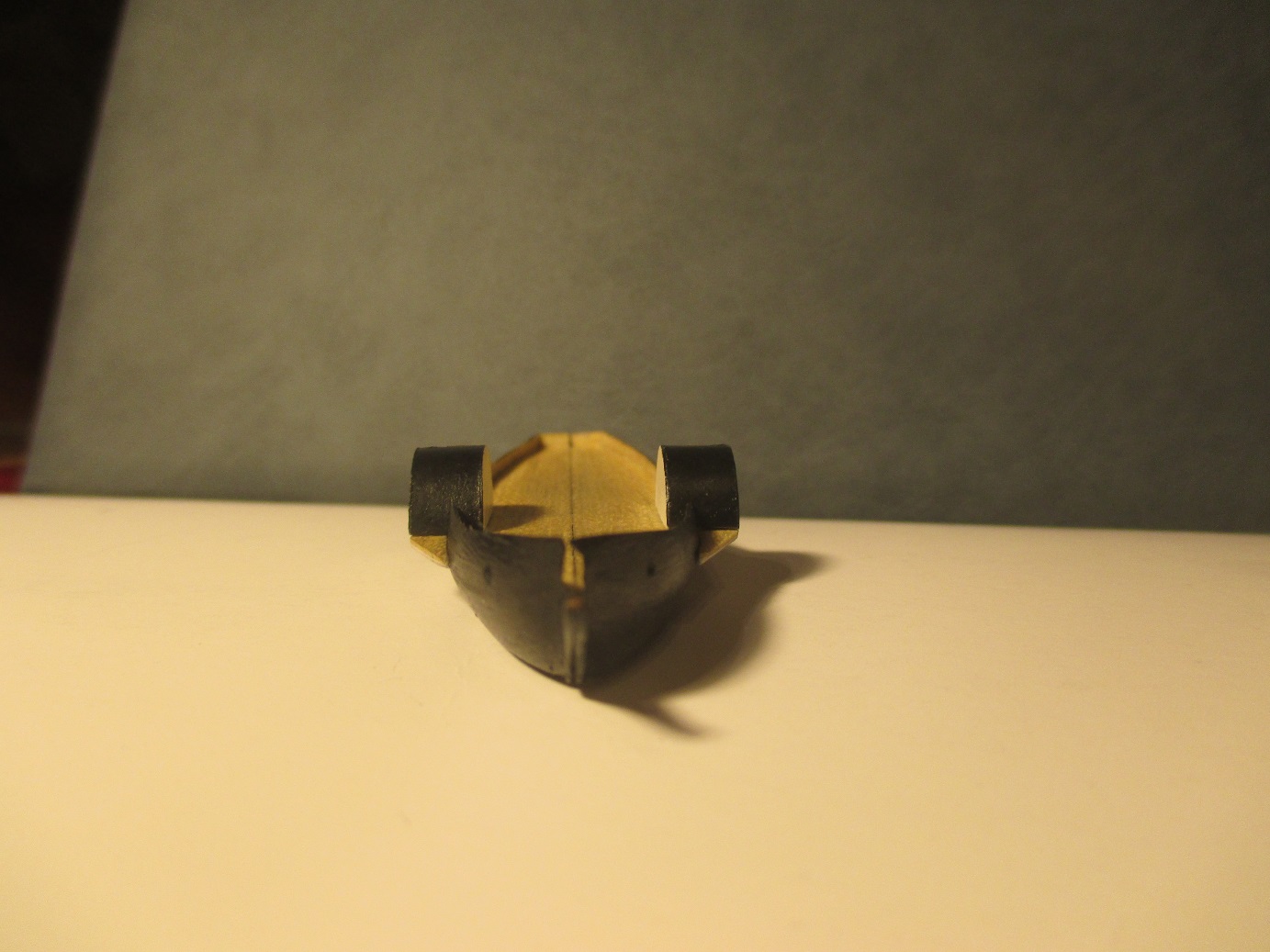 Po trzykrotnych nieudanych próbach wykonania pokładu w dwóch częściach postanowiłem zrobić deskowanie. Dlaczego? Niestety łączenie połówek kadłuba było zbyt widoczne. Oczywiście przy takiej skali nie uda mi się tego zrobić tak jak to było w rzeczywistości. Deseczki mają szerokość ok 1 mm. Zastanawiam się nad kolorem pokładu i czym go pomalować. Obecny kolor jest dla mnie za jasny i za czysty. Może macie jakieś pomysły?