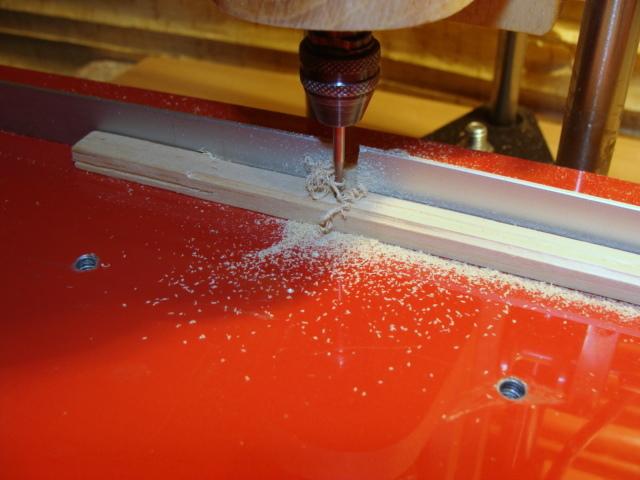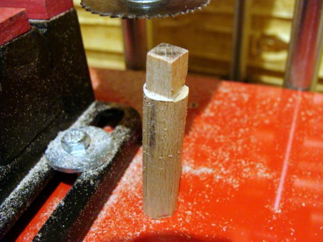 Romek,posuw śrubowy dolnego stolika, to śruba M6(może być też i z metra) i trzy bukowe klocki, dwa nagwintowane które umocowane są od spodu blatu.Trzeci,ten co go widać,stawia opór pociągowi śruby.Oczywiście w tym miejscu bez gwintu.Nakrętka przed nim powinna być samokontrująca lub zwykła zabezpieczona przed dokręcaniem np.cyjanoakrylem.Klocek przyklejony i przykręcony od spodu na wkręt.Tak,że wytrzymuje opór stawiany przesuwaniu się stolika.