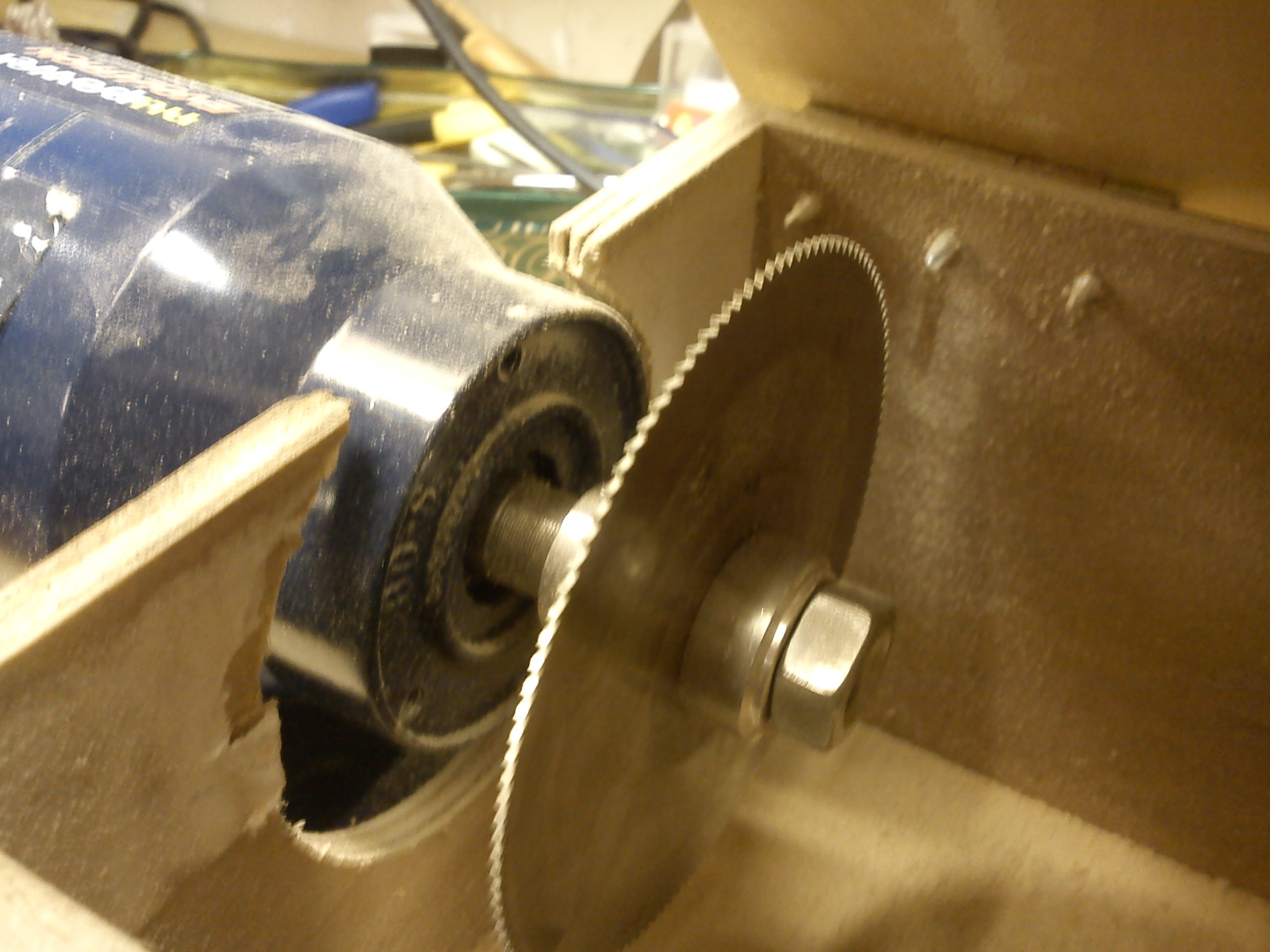 Pooglądałem sobie cały temat, podumałem trochę i spłodziłem szlifierkopilarkę. Pomysł jest doskonały wykorzystałem bez pytania :) napęd jak u wszystkich, zrobiłem tylko nieco inną skrzynkę, czekam na frez ten na fotce to tymczasowy z węglikami- za toporny. Zrobiłem pierścienie na kilka średnic tak aby mozna było stosowac różne tarcze. Będą jeszcze otwory do odsysania pyłu ale to po Świętach jak kupię jakiś warsztatowy odkurzacz.