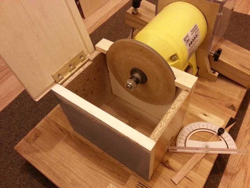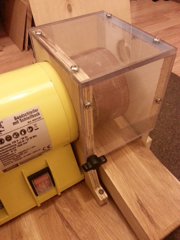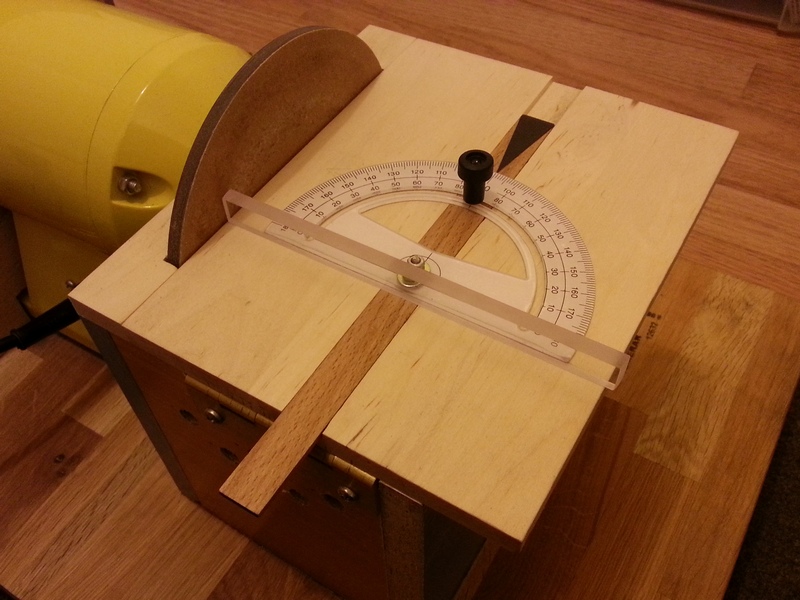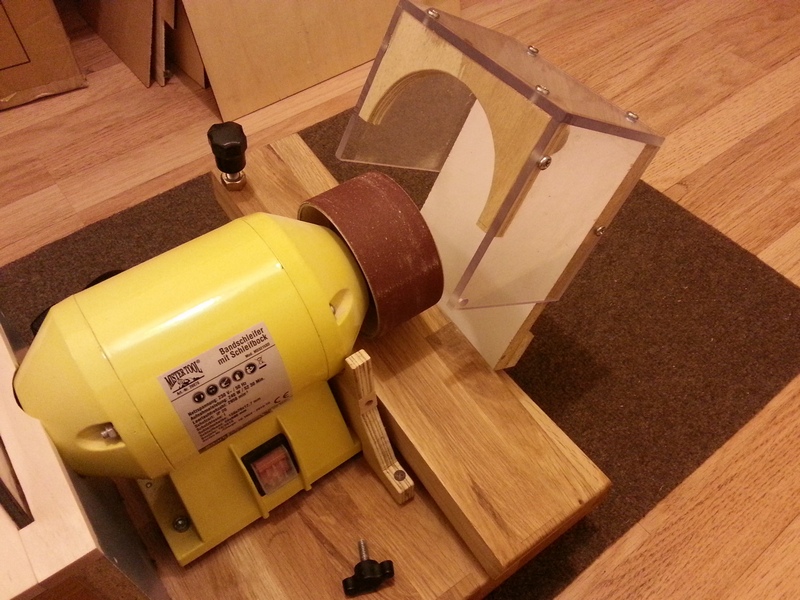 Wszystko jasno opisane i pokazane, łącznie z opisem budowy kątomierza, który przedstawił kolega Jarek. W swojej konstrukcji wprowadziłem kilka drobnych zmian, głównie ze względu na braki materiałowe, jak również na pomysł zaadaptowania oryginalnego bębna szlifierki do ścierarki. Myślę że nie wyszło tak źle. Jak na potrzeby początkującego modelarza , czyli mnie, to sprawdza się to ponad moje oczekiwania. Jako podstawę pod szlifierkę wykorzystałem solidną dechę z pozostałości po blacie kuchennym. Do tego trochę sklejki 13mm, płyty wiórowej, jedna mała deska do krojenia, plexi 6mm, trzy zawiasy, mocna taśma dwustronna, kilka śrub różnej maści i odrobina wyobraźni. Resztę niech opowiedzą fotki...