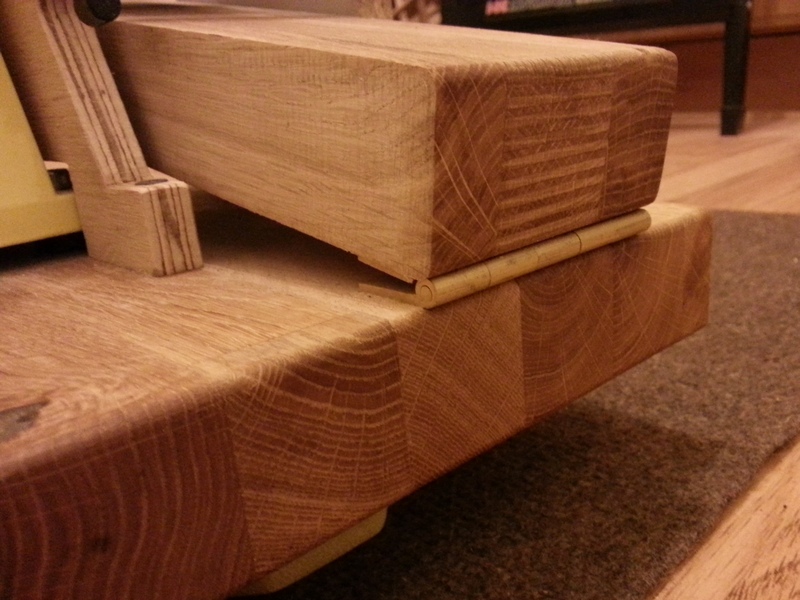 3. Pomimo ,że masz dość gruby blat drewniany to proponuje założyć drugą śrubę regulacyjną , ponieważ może dochodzić do skośnego szlifowania listew którego powodem może być skręcanie się zawiasów i blatu