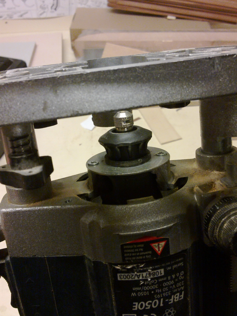 ale moim zdaniem zdaniem do nafrezowania kilku listewek do modelu to wystarczy w zupełności. Jestem stolarzem więc musiała byc wykonana z drewna czy też płyty. Kupiłem bardzo tanią multiszlifierkę, rozebrałem starą uszkodzoną i wysłużoną frezarkę, wybebeszyłem ją i w środek zainstalowałem nową. Przede wszystkim zależało mi na mechanizmie regulacji frezarki i się udało. Może tandeta ale jakże praktyczna i tania. :D