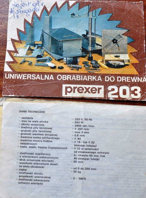 To jeszcze nie wszystko.Powinna jeszcze być szlifierka na papier ścierny,która jest zamocowana po przeciwnej stronie na osi piły tarczowej.Ponadto na tym samym miejscu mocuje się frezarkę oraz wyrzynarkę.Właściwie jest to piła na modelarskie brzeszczoty.Taki kombajn zakupił kolega na stadionie w Warszawie w zamierzchłych czasach.Niestety nie chce go odsprzedać.Pozdrawiam.