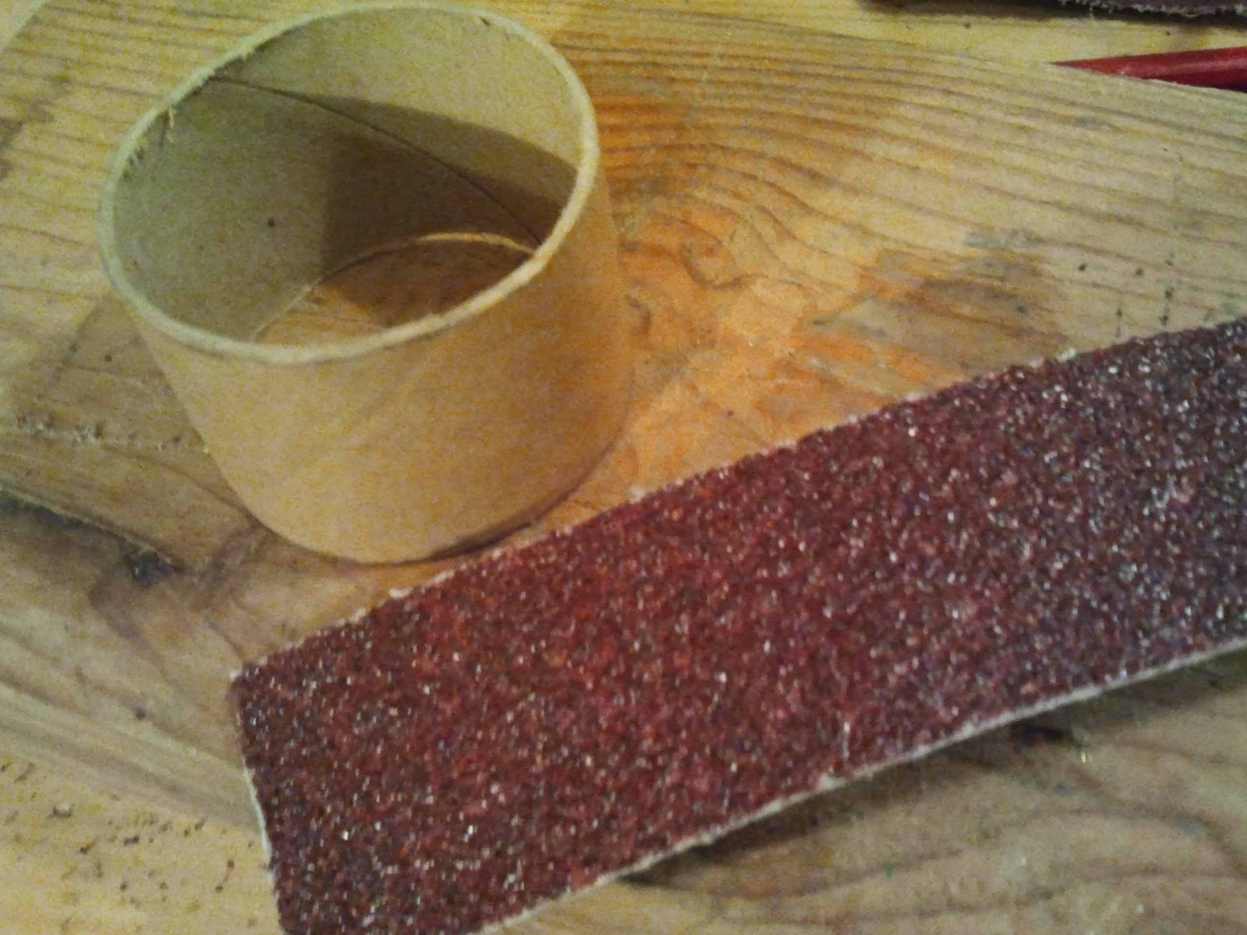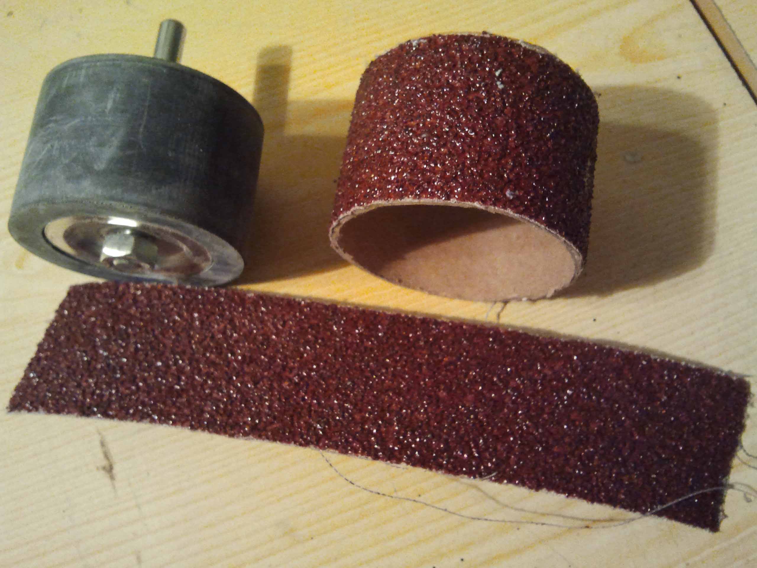 W związku z tym, że czeka mnie dużo szlifowania,postanowiłem wykonać własnoręcznie cylindry do szlifowania.Jako baza posłużyło opakowanie, w którym kiedyś otrzymałem jakąś przesyłkę.Prawie idealnie pasowało do średnicy gumowego wałka szlifierskiego.Papier naklejałem wikolem.Reszta na zdjęciach.Cena takiego to niewielki procent ceny firmowego,a działa identycznie.