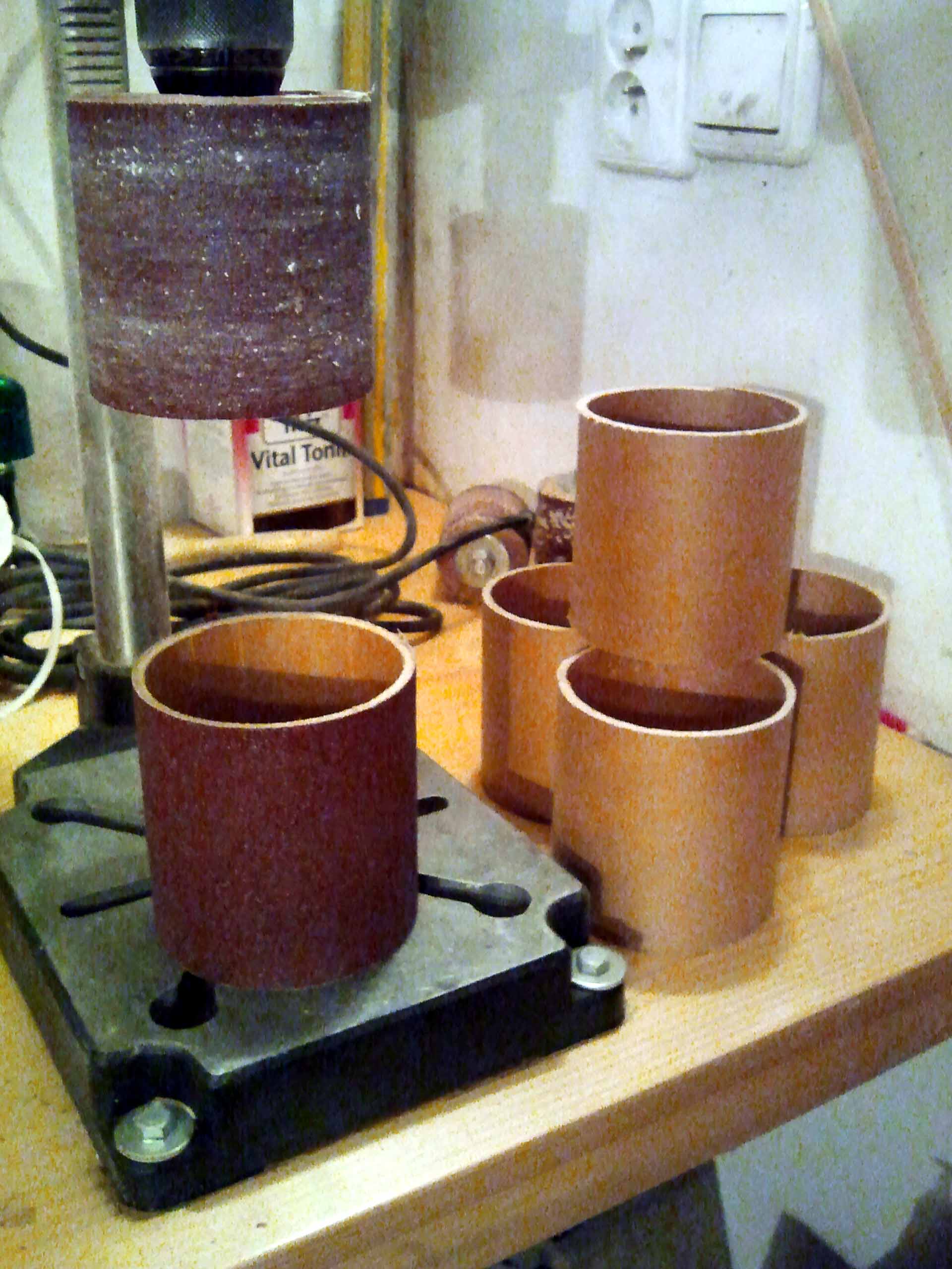Dostałem rurę kartonową odpowiadającą średnicy moich największych cylindrów szlifierskich.Kilka sobie zrobiłem.Rurę ciąłem piłą taśmową.Wyszły idealnie równe.