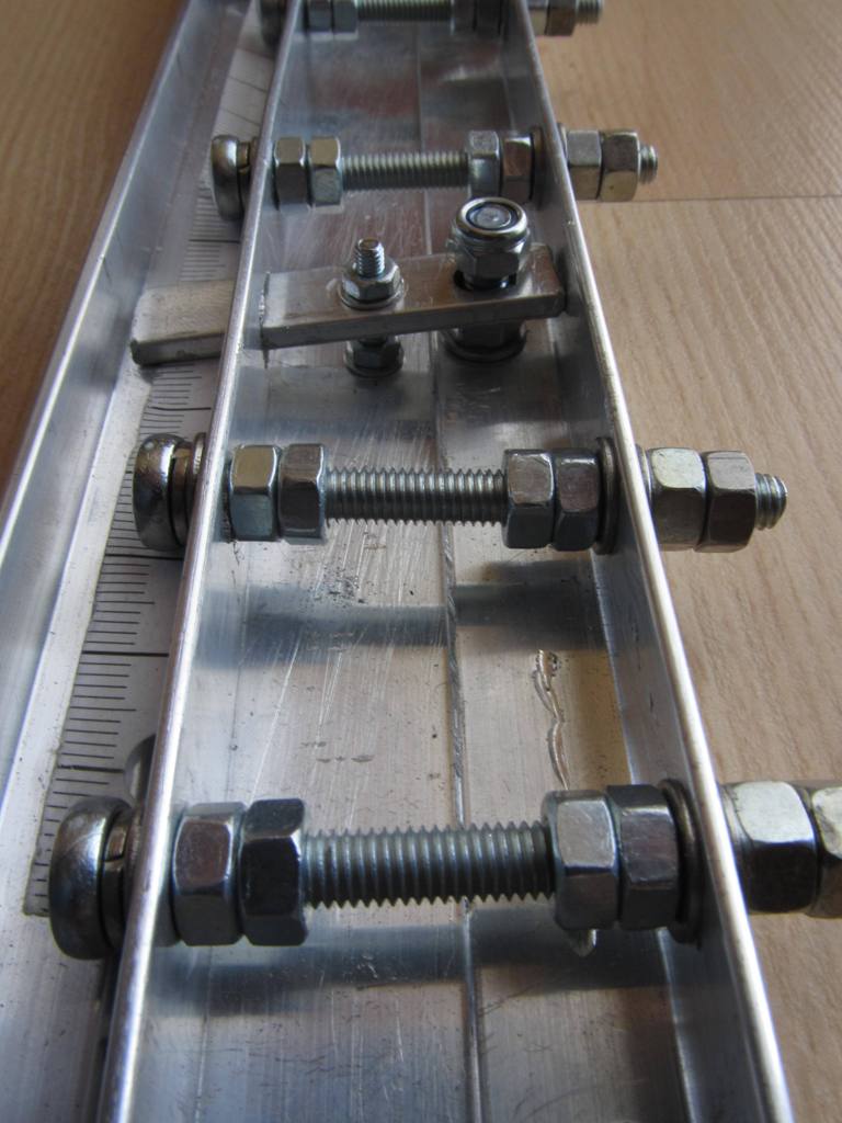 (śruby nie obracają się gdy optymalnie główka jest przykręcona do kątownika "wyginającego się", zastosowane podkładki sprężyste i płaskie łby śrub dają możliwość odchylenia się kątownika od osi śruby o kilka stopni.)