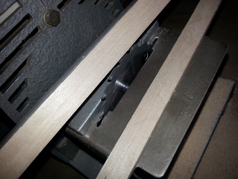 Z nową piłą maszyna śmiga aż miło.Pozostaje powiększyć trochę blat do cięcia.Zyskałem ok 11 mm na grubości ciętego materiału.