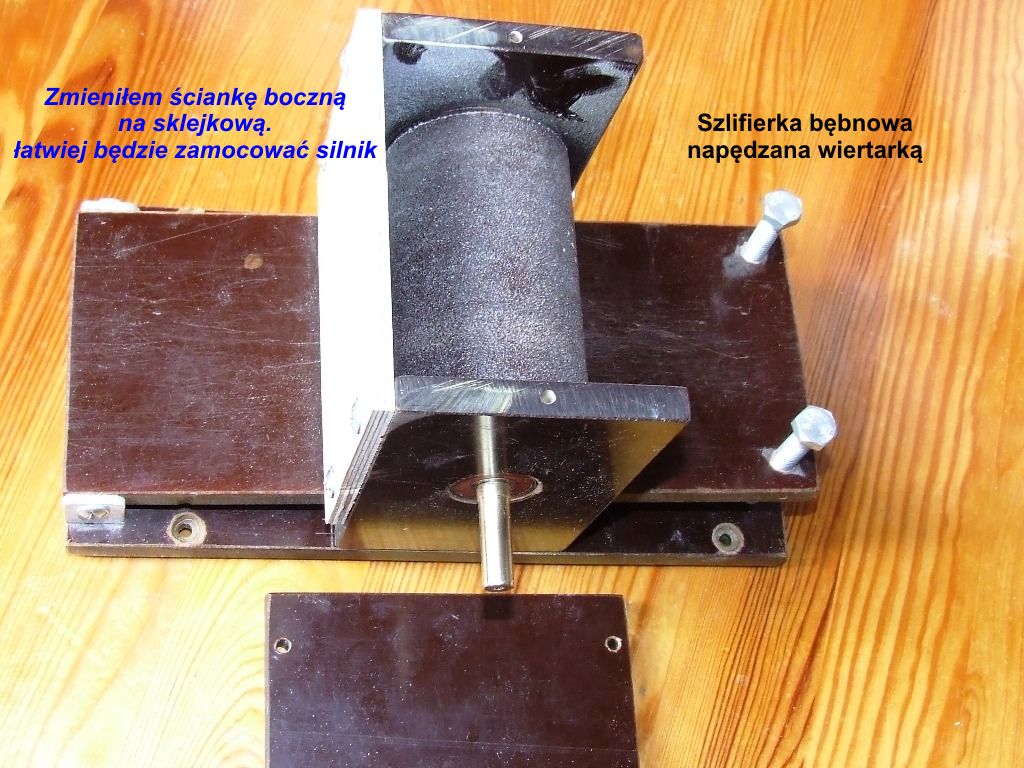 Ta szlifierka bębnowa napędzana była wiertarką.