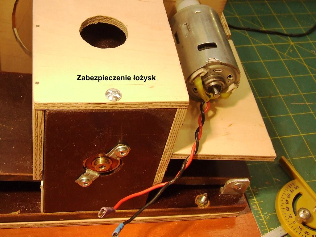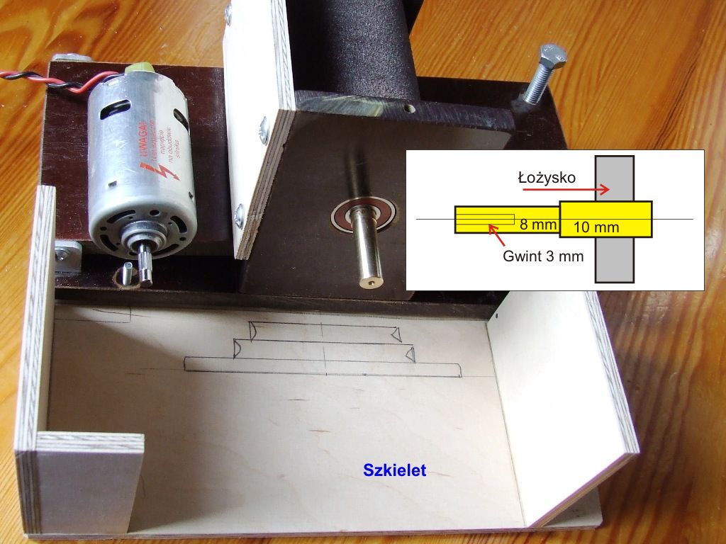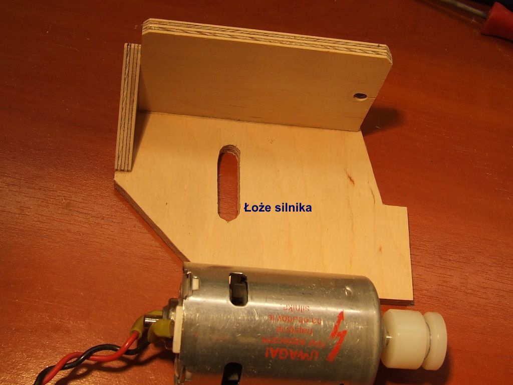 Zostało zamocowanie silnika (do prób był zamocowany ściskiem)