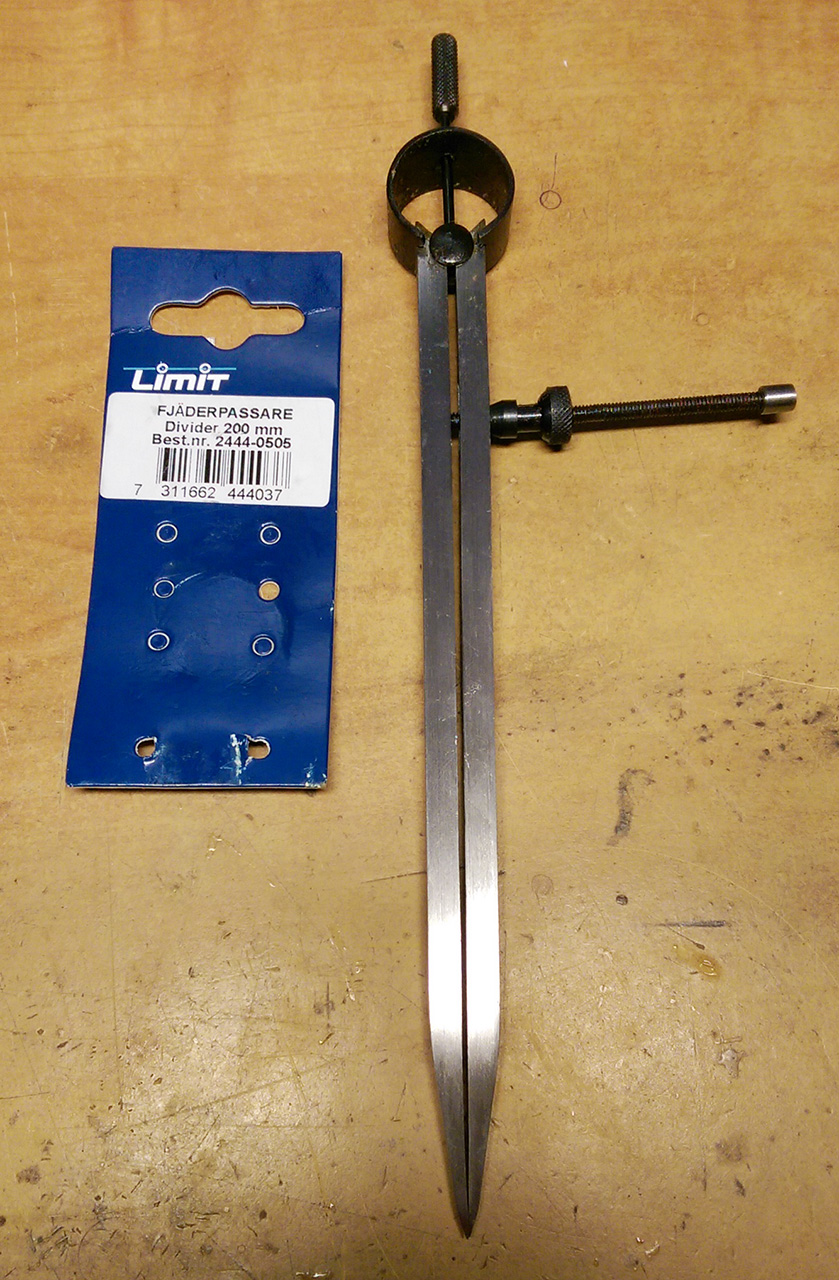 Zapałałem chęcią posiadania przyzwoitego cyrkla traserskiego, szybko popatrzyłem co jest na aledrogo, a że ostatnio w portfelu słabo to padło na produkt firmy Limit w rozmiarze 200 mm. Przyszedł i jedno co mogę o nim powiedzieć - stanowczo odradzam. Wykonany krzywo z gównolitu, który wygina się w rękach a pod pilnikiem znika. Poniżej foto owego badziewia.