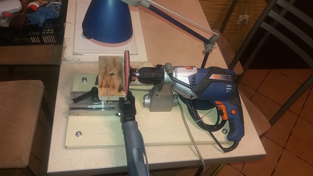 Napęd - zwykła wiertarka, kółko szlifierskie standardowe za kilkanaście zł.