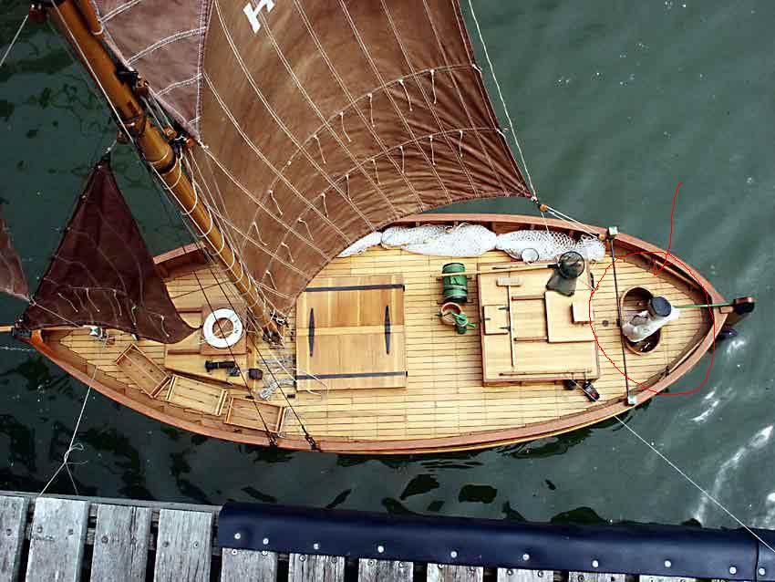 Koledzy zauważą zapewne, że robię opcję kutra wcześniejszą - a więc żaglową. Co za tym idzie, nie będę rzezał nic w stewie, nie będę robił śruby ani komina w tylnej zejściówce. Za to przyłożę się do żagli.