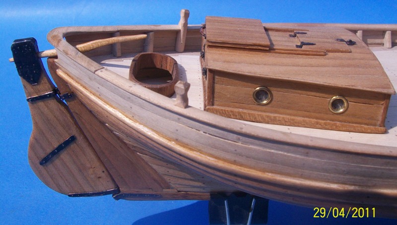 Kokpit sternika nie zaolejowany, robiony metodą Stefanową - szablon z forniru, oklejony listeweczkami fornirowymi od środka oraz od zewnątrz, następnie wyszlifowany i podpilnikowany od zewnątrz, żeby ładnie wszedł w dziurkę, a powstały ząbek nakrył deskowanie pokładu. Do olejowania.