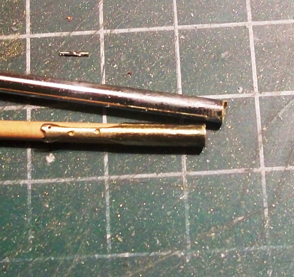 Wypiłowane z rurki z anteny od radia, za radą miłego kolegi Jeskoma. W sumie nie jest chyba źle, ewentualnie jutro zrobię drugi tą samą metodą i ten co będzie ładniejszy zostanie. Do tego dolutuję blaszkę od mocowania do masztu i zacznę składać "kosz" do przesuwania gafla po maszcie.