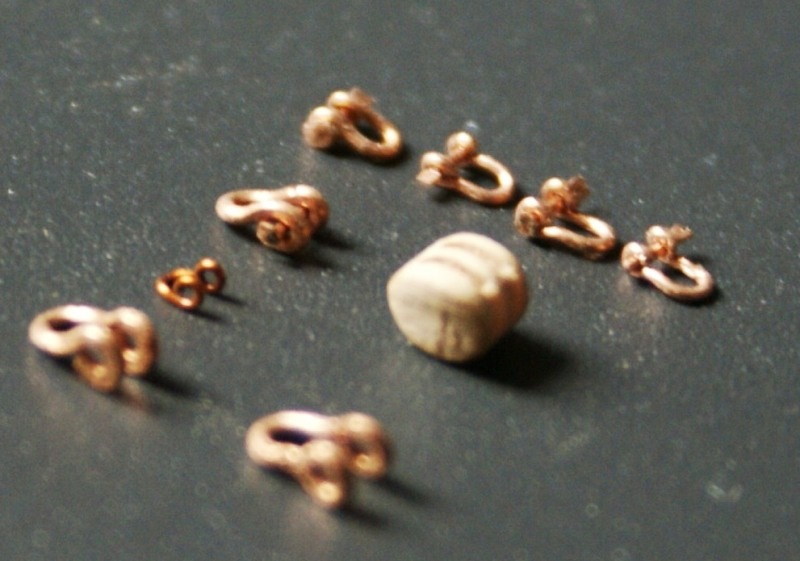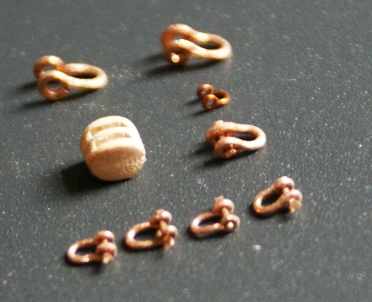 No po weekendzie opracowałem 8 sztuk takich jak po lewej stronie. Ta wielgachna, to to co najpierw prezentowałem, a z przetyczką - to wersja czwartkowa. Coby było porównanie. Muszę teraz sprawdzić dokładnie ile tych szekli potrzebuję.