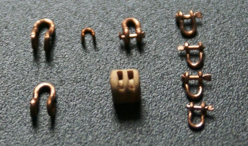 Ja robiłem to tak - blaszke 0.3 mm wyżarzoną dogiąłem do kształtu gafla. Następnie wyciąłem z grubsza kształt okucia. Potem to wyprostowałem i oszlifowałem. Następnie znowu dogiąłem i wywierciłem otworki pod nity. Następnie zagiąłem na końcówce, coby weszło w okucie beczki. Teraz musiałbym tylko zlutować okucie i byłoby cacy. Gdyby nie to, że wygląda jakbym je zagryzał zębami :(