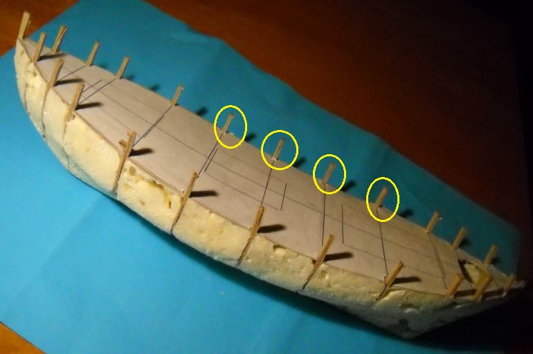 Oczywiście, że po poszyciu burt powinieneś te nadwyżki odciąć i zamienić normalnymi wspornikami burtowymi z odpowiedniego drewna.