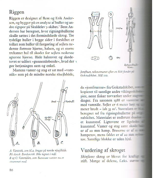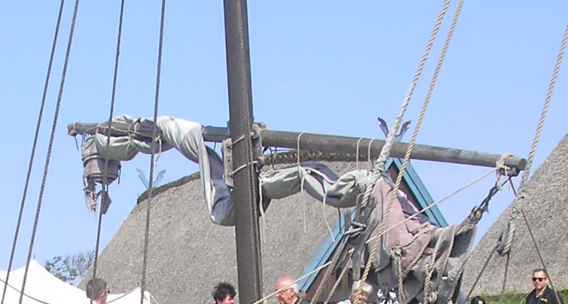 Rysunek z dość szczegółowej rekonstrukcji łodzi Skuldelew1 pokazujący połaczenie rei z