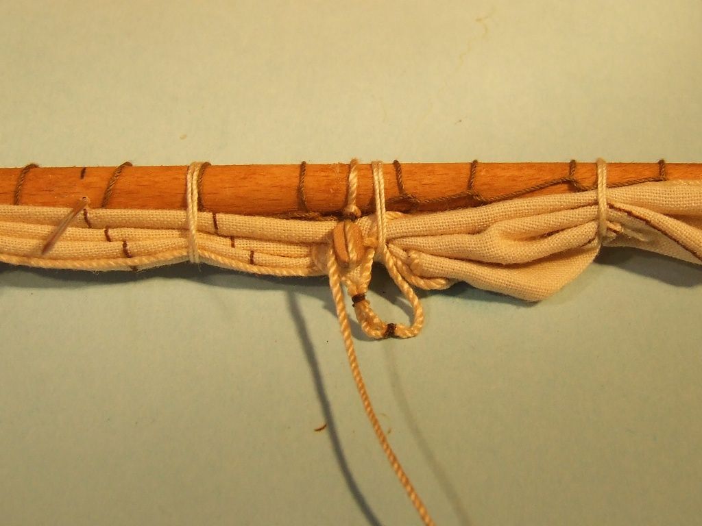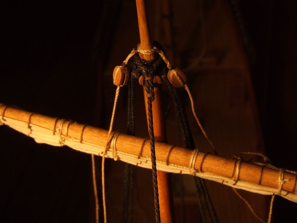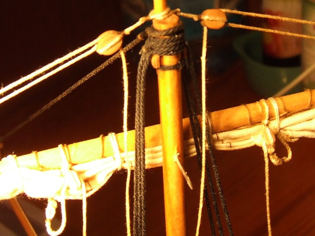 Przywiązałem 16 bloczków do żagli grota.