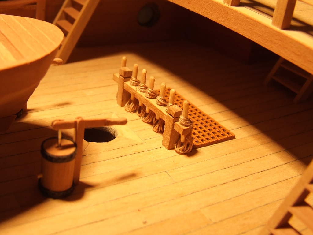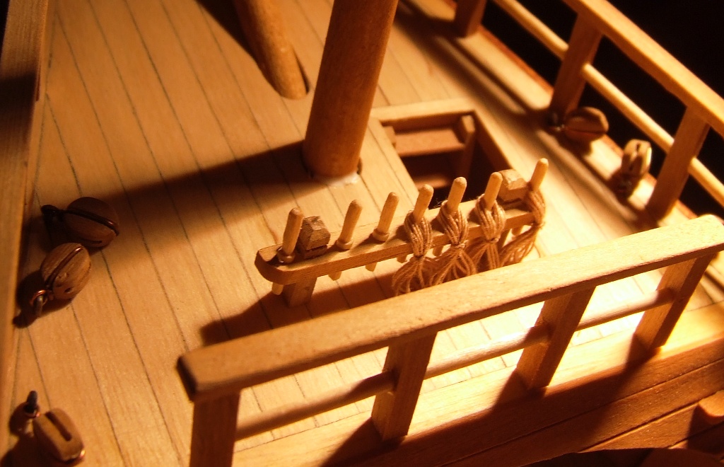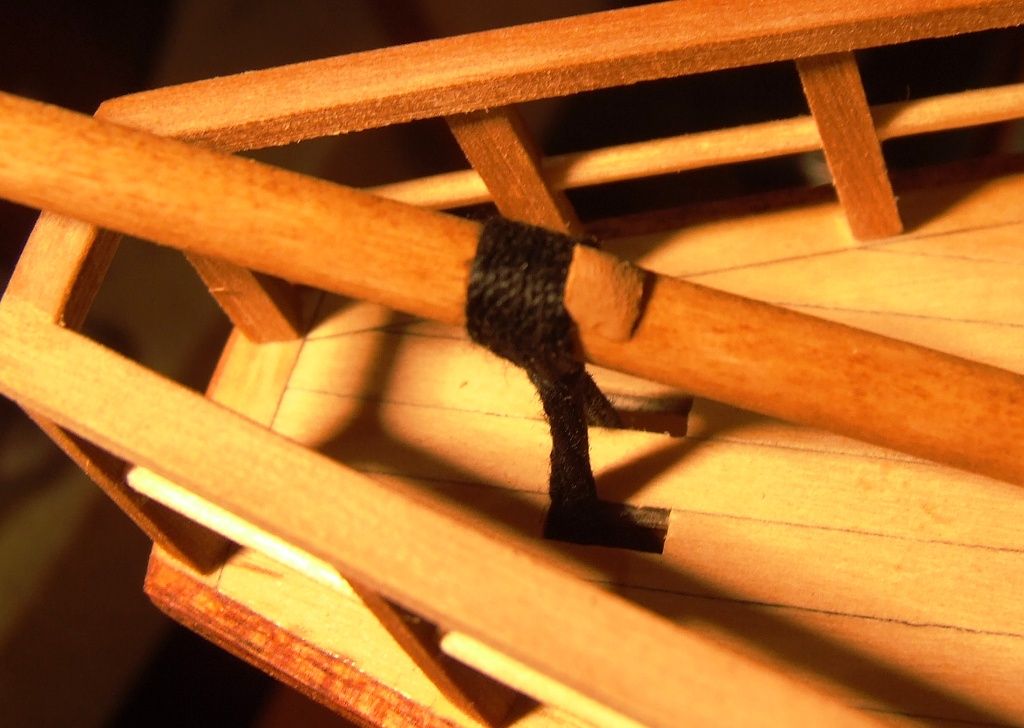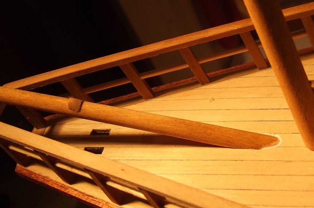 Wkleiłem też fokmaszt i wyciąłem otwory na dziobie